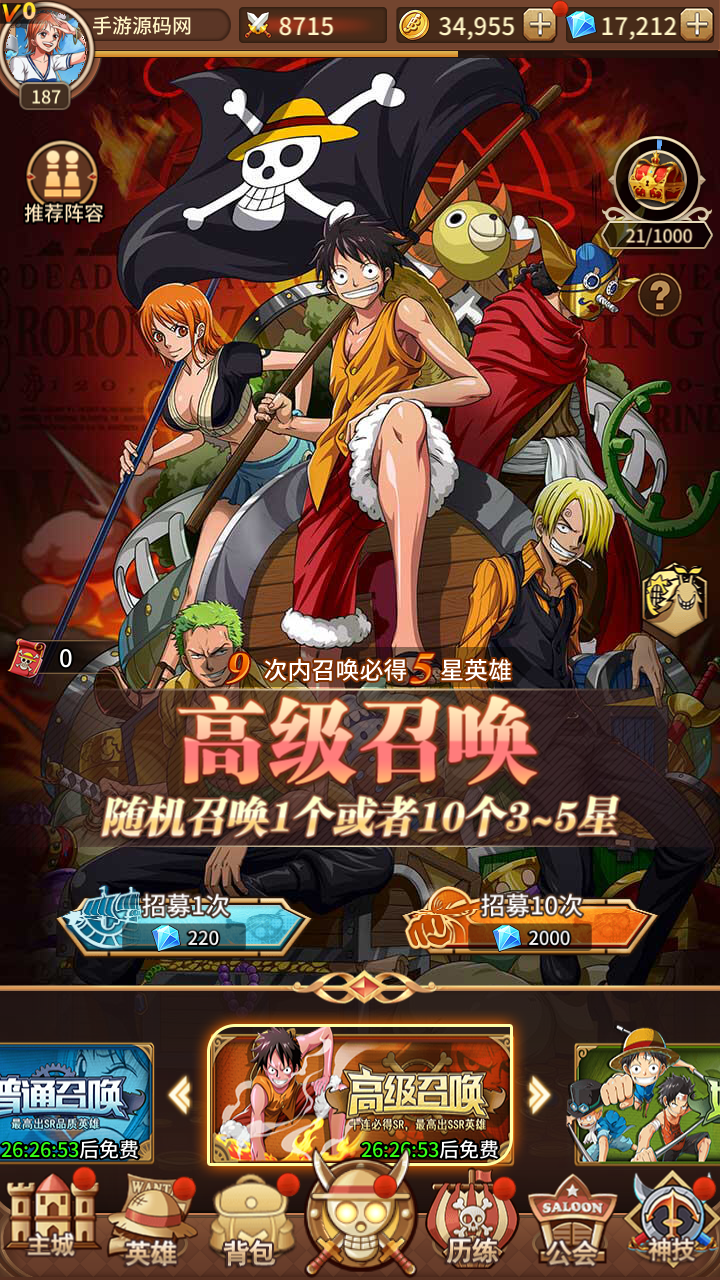 【海贼王伟大航路之六系新世界内购版】站长推荐稀有冒险卡牌剧情手游-2024年11月18日最新打包Linux服务端源码视频架设教程-开放多区跨服-新版多功能CDK授权后台-用户物品后台-安卓版本!
