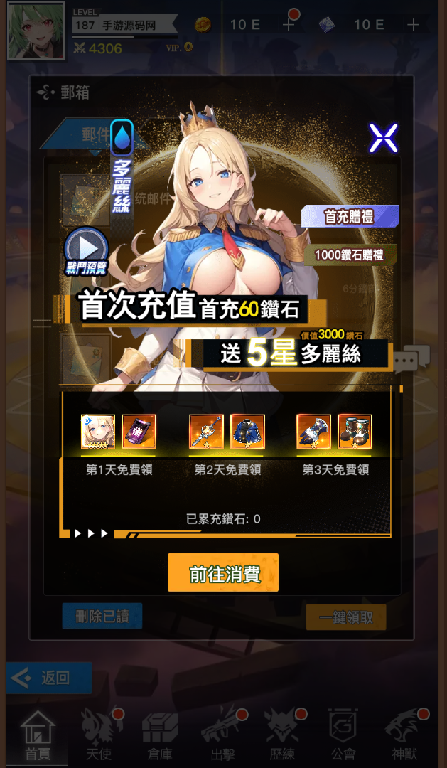 3、这里的充值与经典的充值玩法不同,它不是冲的越多优惠越大,而是按照充值的次数。