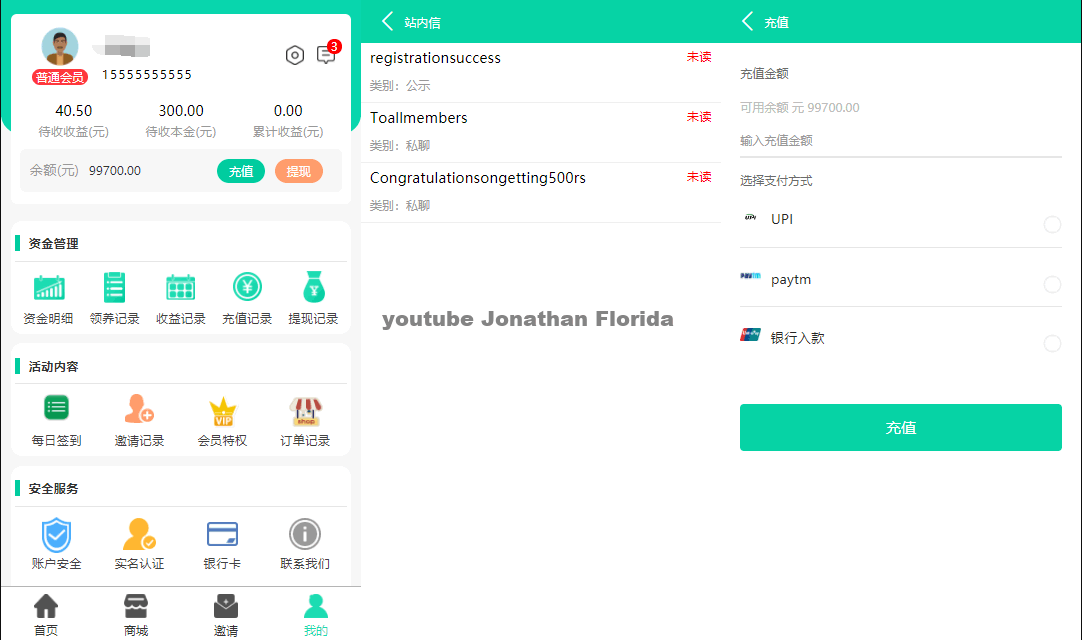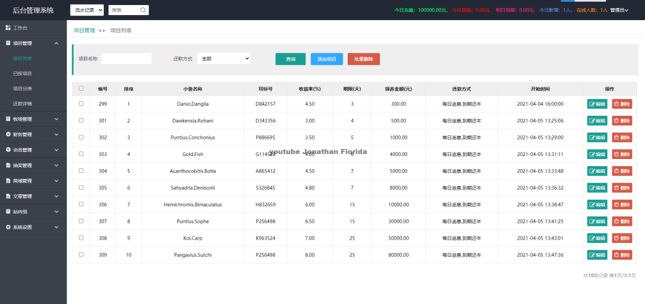 最新养鱼理财源码,用之前的牧场养牛源码进行二开的,养鱼理财源码。中文和英文双语言。除了线下支付,增加了4个线上支付方式。 1、新增短信接口:短信宝、云片短信、网建短信。 2、新增阿里API实名认证,支持开启或关闭。 3、新增阿里API银行卡实名认证,支持开启或关闭。 4、新增项目分类开关、支付宝和微信提现开关、签到理财开关等更多更能请自行体验。 注:在使用本系统时,使用方必须在国家相关法律法规范围内并经过国家相关部门的授权许可,禁止用于一切非法行为。 使用用途仅限于测试、实验、研究为目的,禁止用于一切商业运营,本团队不承担使用者在使用过程中的任何违法行为负责
