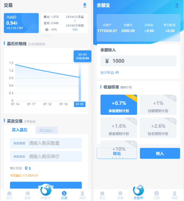 全新ui矿机系统源码/区块链云算力源码矿机/余额宝理财/虚拟币交易市场源码