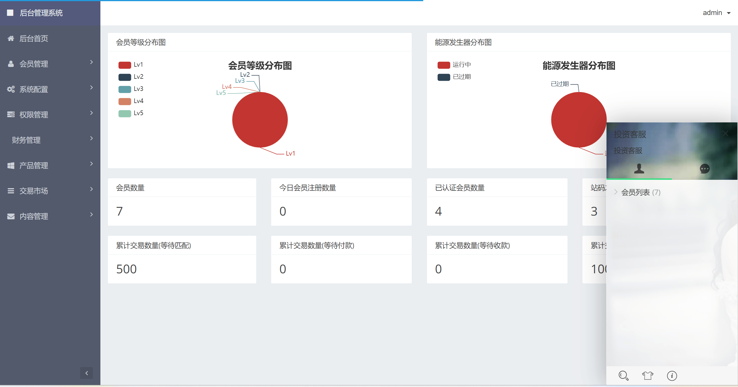 功能还算完整,UI也还不错,带有余额宝理财、虚拟币交易市场等功能,还内置了layim在线客服,可以正常发文字聊天,但是不能发图片