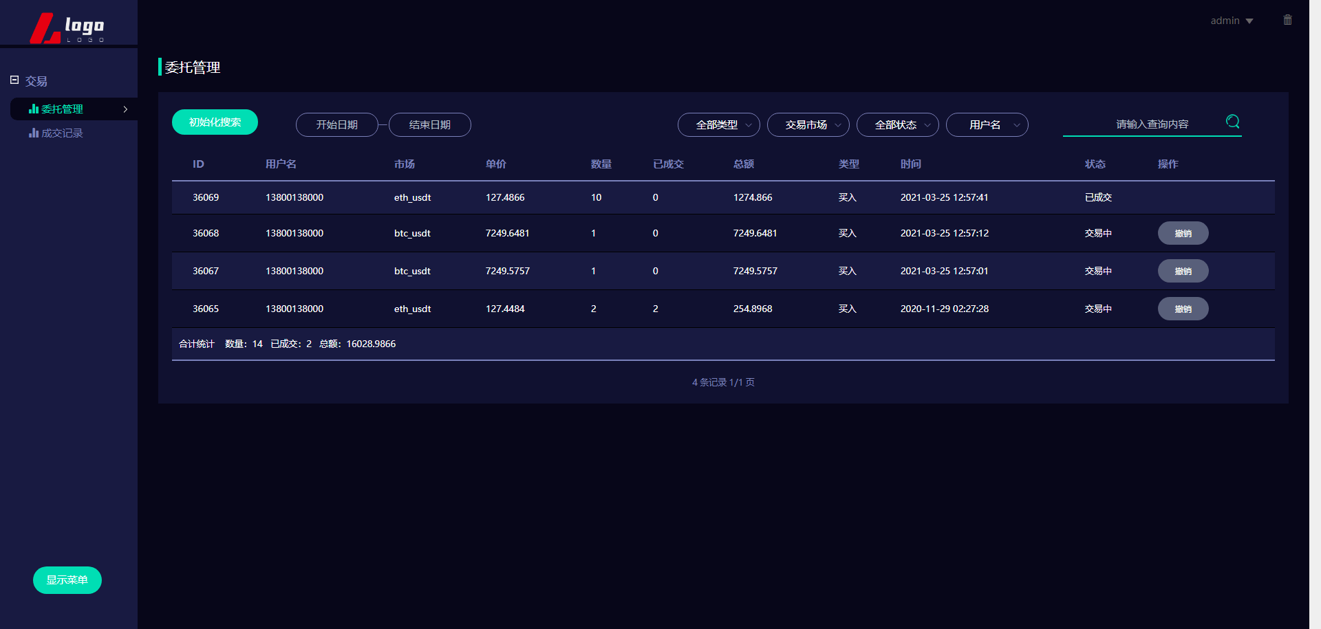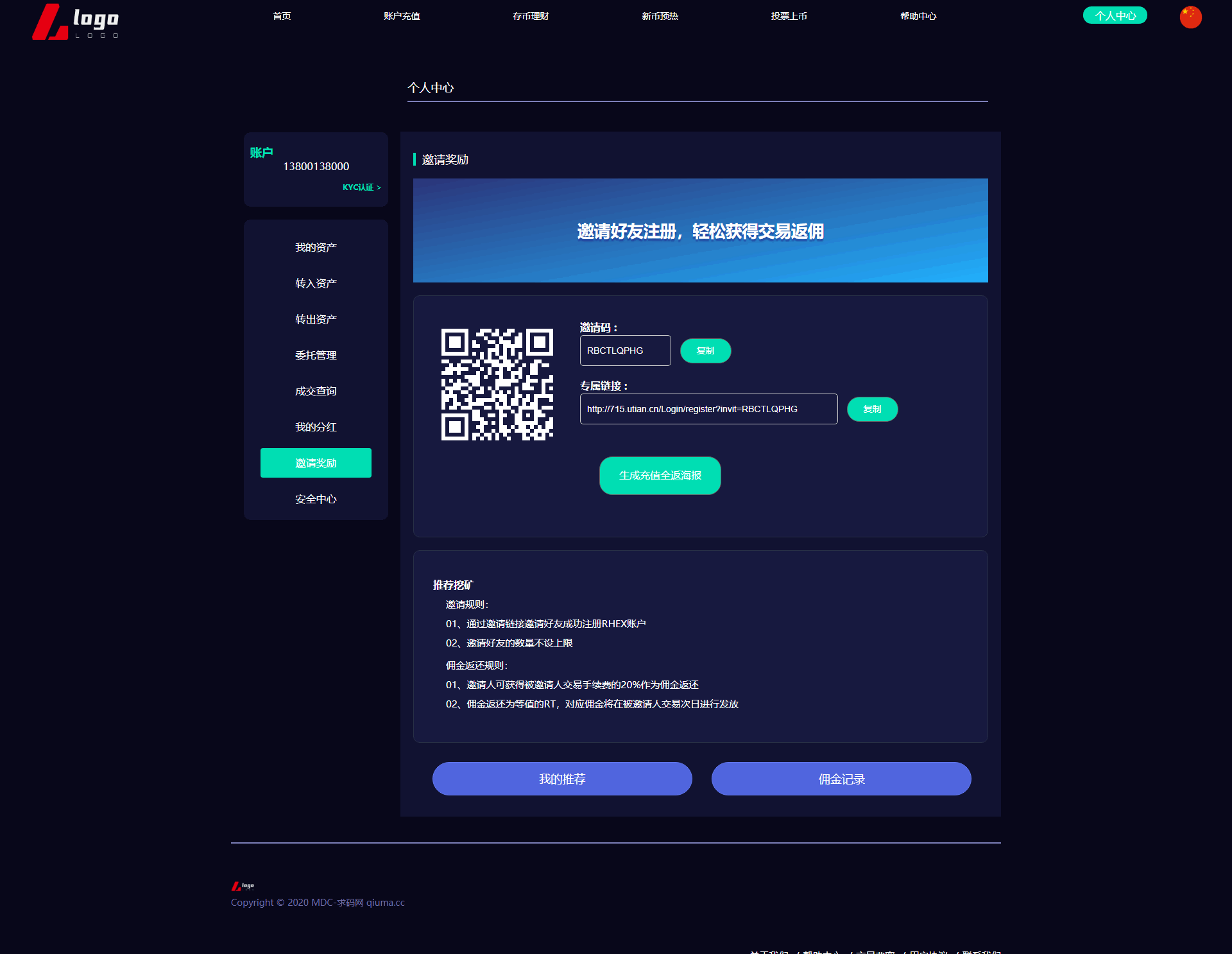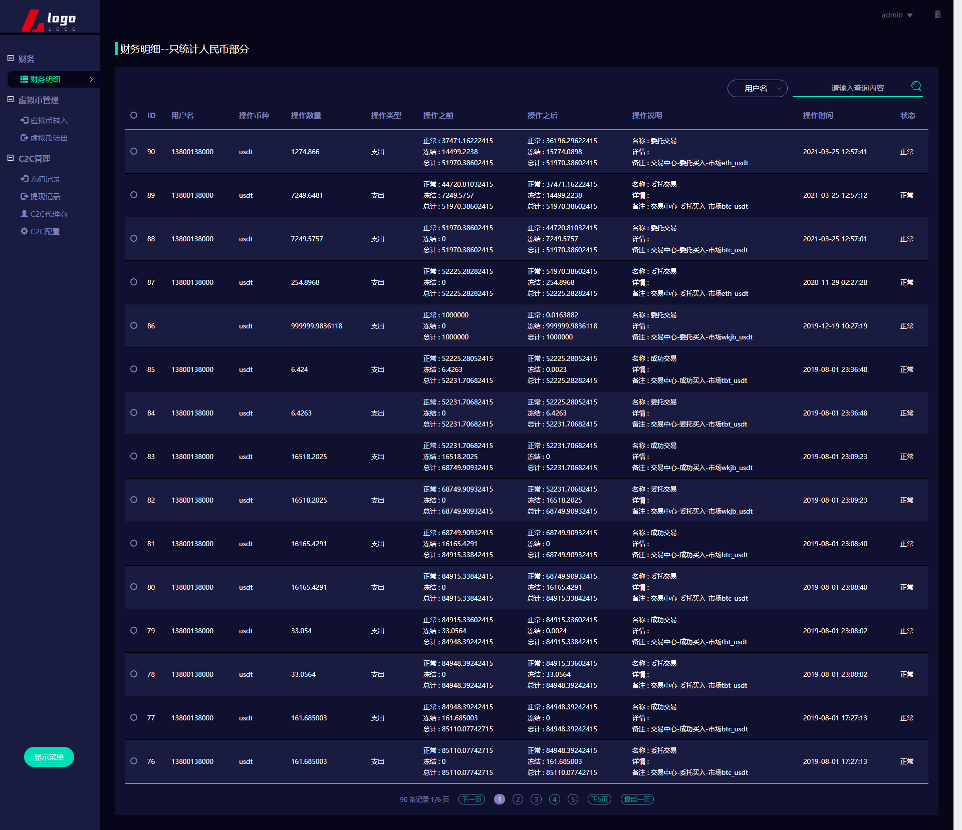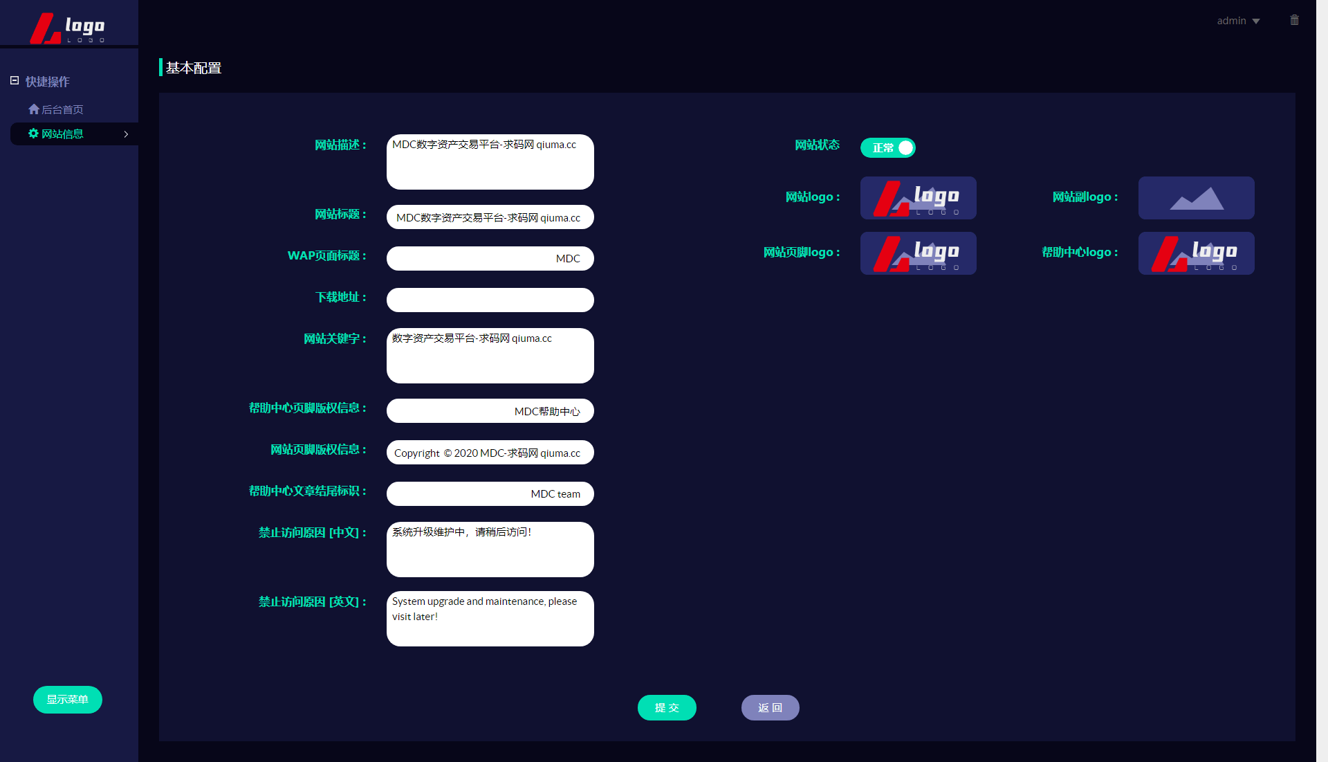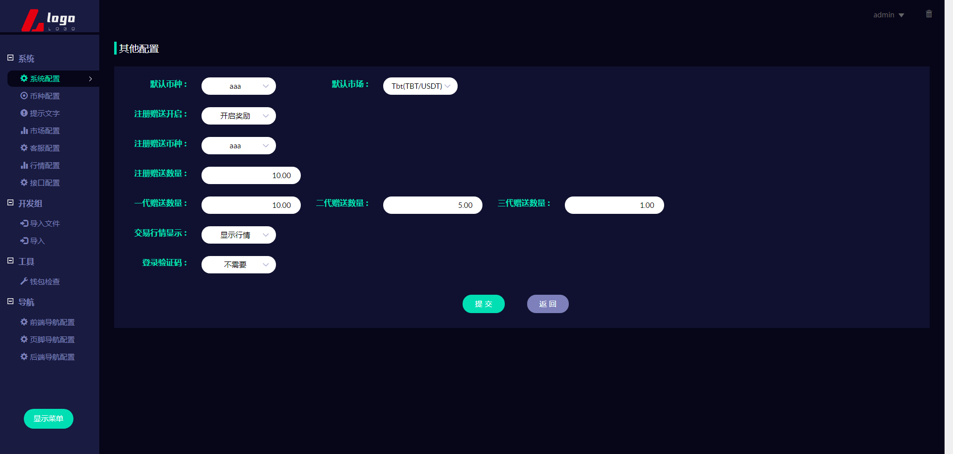 新版数字币交易所/数字资产交易平台/区块链交易所/币币交易/代币开发/带走势K线/挂买挂卖 本系统为高端多语言多币种虚拟币交易系统 带币币交易 OTC下线交易 自动机器人 1.系统流畅、体验性更好(各类数据分析,财务明细设置等)。 2.用户管理(用户认证信息,实名信息及资料编辑等) 3.钱包管理(用户链上钱包地址管理,系统数据管理记录筛选); 4币种管理(后台自助币种添加,交易对添加,主流币更新数据); 5.币币交易管理(用户撮合管理,实名认证,审核标准); 6.前台基础信息(系统用户协议公告,轮播图,社群推广链接) 币币交易模式介绍: 币币交易主要是针对虚拟数字资产和虚拟数字资产之间的交易,以其中一种币作为计价单位去购买-币种 币币交易规则同样是按照价格优先时间优先顺序完成撮合交易。 C2C交易模式介绍: 交易双方根据需求在C2C交易平台上发布买币或卖币的交易信息。买卖双方根据约定的付款方式 线下完成交易,平台作为中间人从交易成功的每笔交易中收取一定比例的手续费。 OTC场外交易模式介绍: 是一套独立于交易所外的线下购买数字货的平台,商家可以在该平台上发布购买/出售广告 购买/出售用户通过线下转账的方式进行购买/出售,转账完成后平台会将冻结的数字货转给购买方。 交易矿模式介绍: 交易所平台拿出一定比例的手续费收入来返还给平台用户,返还的是平台币,交易所平台按照分配比例原则 拿出一定的比例作为矿奖励,矿是指在平台上进行交易,来逐渐解锁平台币,直至平台币全部反馈完成。这一类玩法对吸引用户有着强大的吸引力。