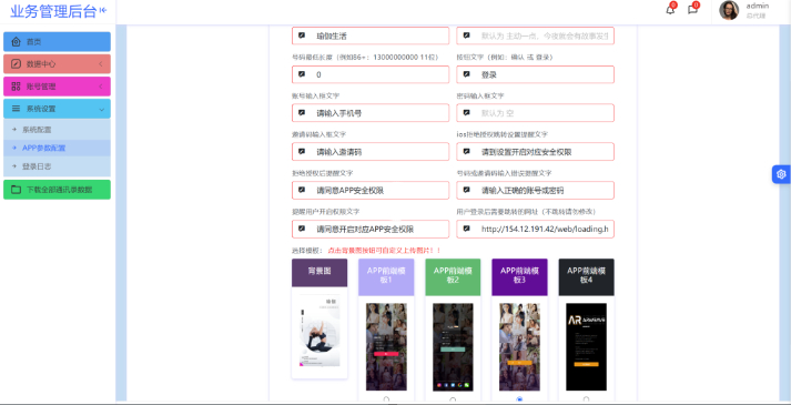 拥有四个APP前端模板,无需重新打包即可一键选择替换。