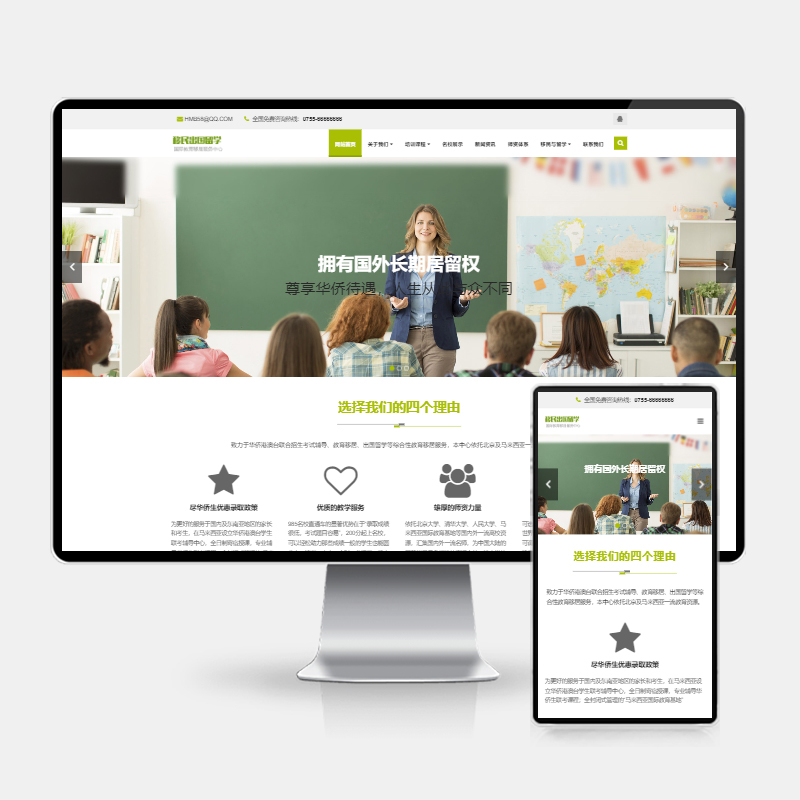 (H5自适应)移民出国留学类网站pbootcms模板 教育培训机构网站源码下载