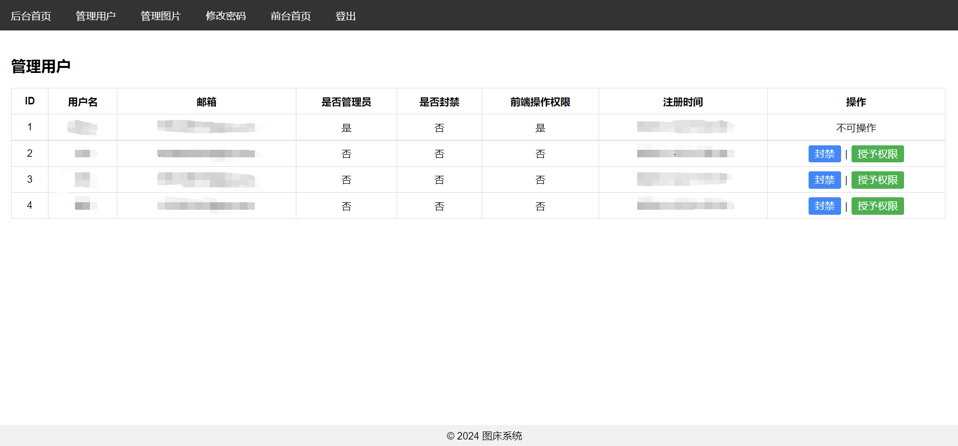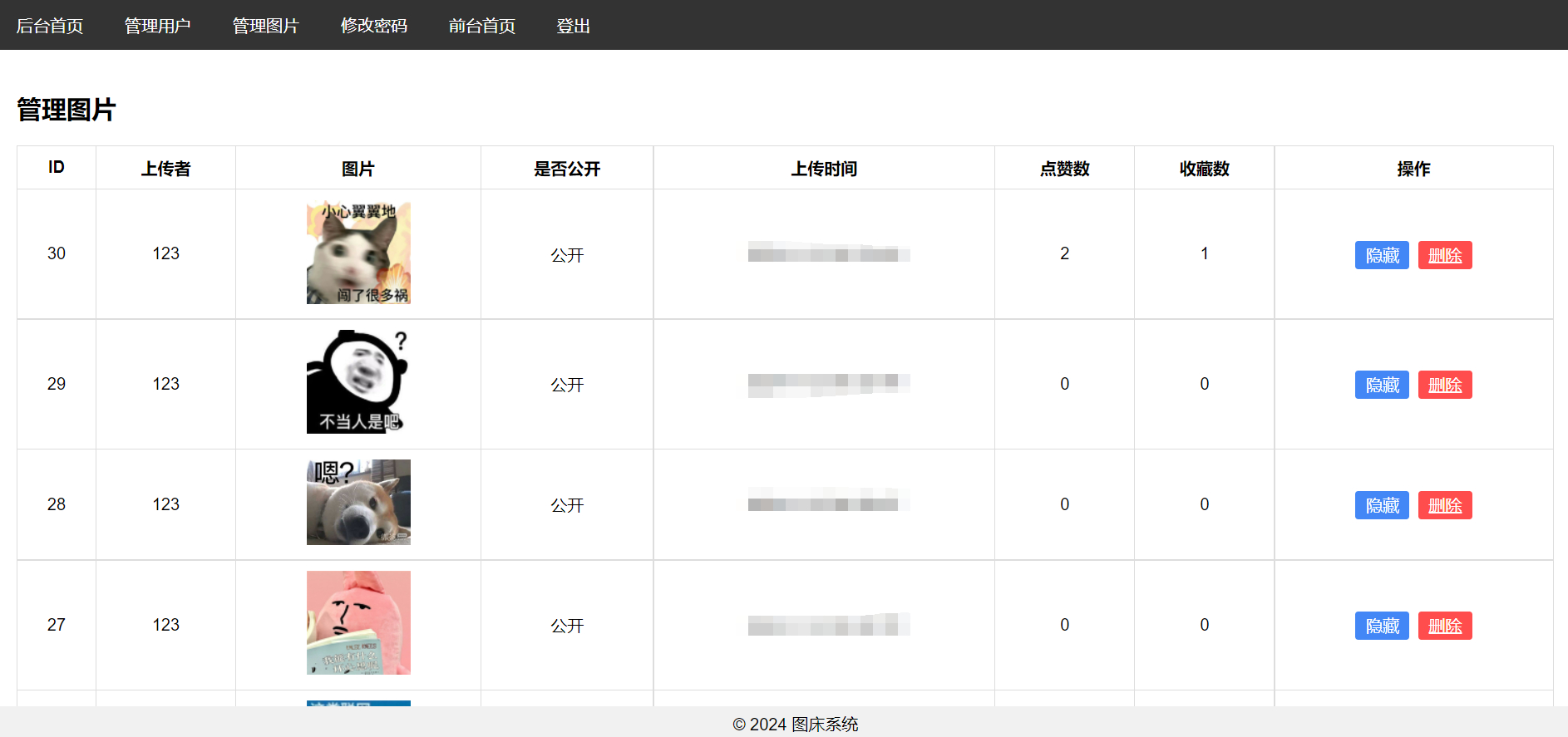 强大的后台管理系统:新版本中加入了后台管理模块,管理员可以轻松实现用户管理、图片管理等操作,并能够灵活地调整用户的公开隐藏权限设置。