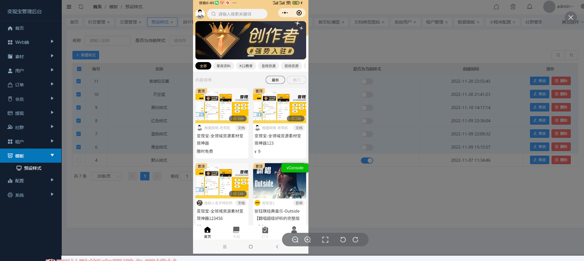 支持:视频,音频,图文,文档,会员,社群,用户发布,创作分成,任务裂变,流量主,在线下载等,更多功能正在不断更新中···