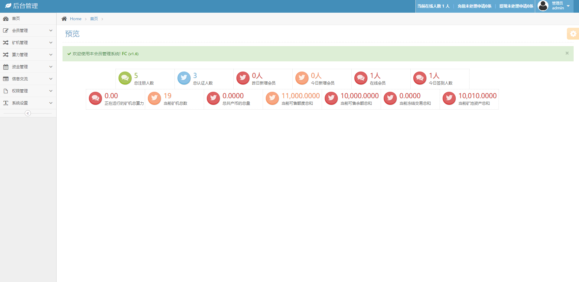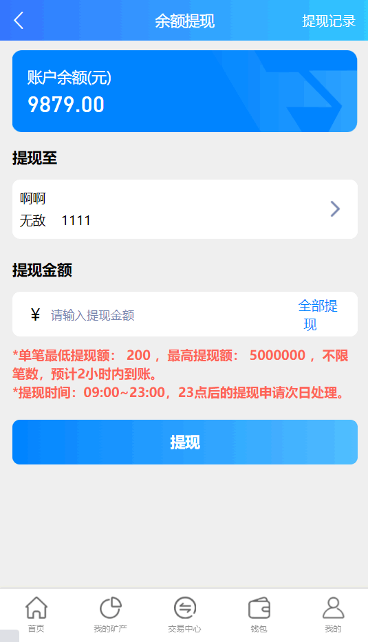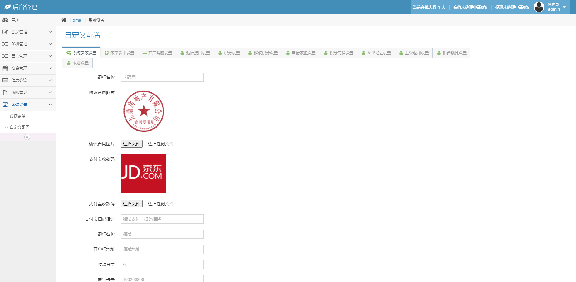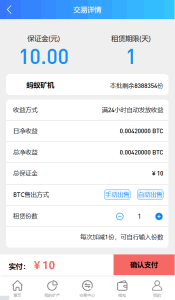 完整版百盟btc算力矿机/合约挖矿/ETH区块/BTC矿池/虚拟币交易 1.合约收益自动发放,每日收益、总计收益都可明细显示。 2.推广好友购买即可领奖励! 3.签到送积分、积分可兑换rmb、实名认证等! 4.交易中心动态k线已对接火币API幅度跌涨波动正常! 5.后台可自定义矿机,自定义合约交易,总之功能非常完善,新手小白也可上线运营! 6.框架漏洞修复!