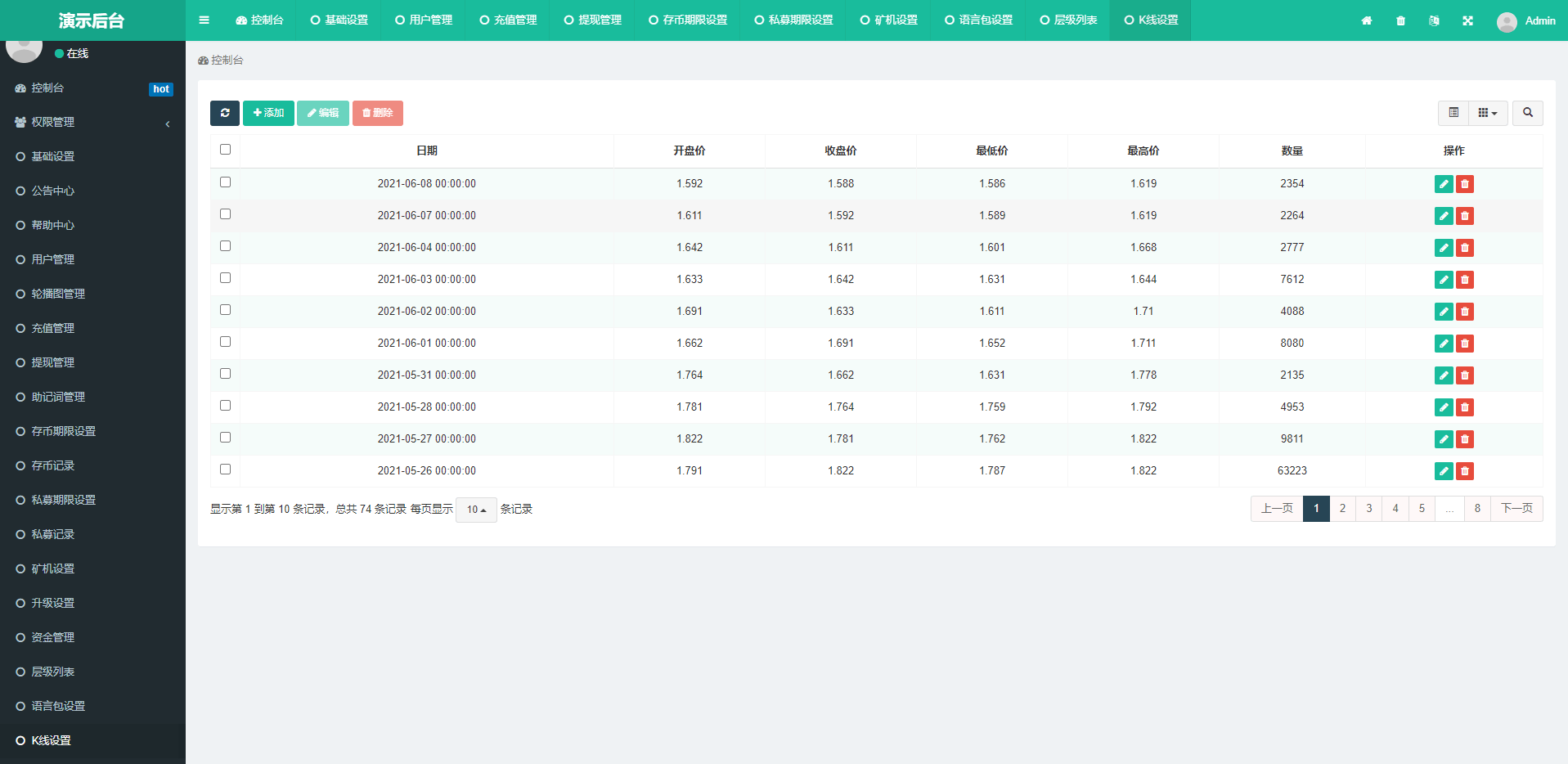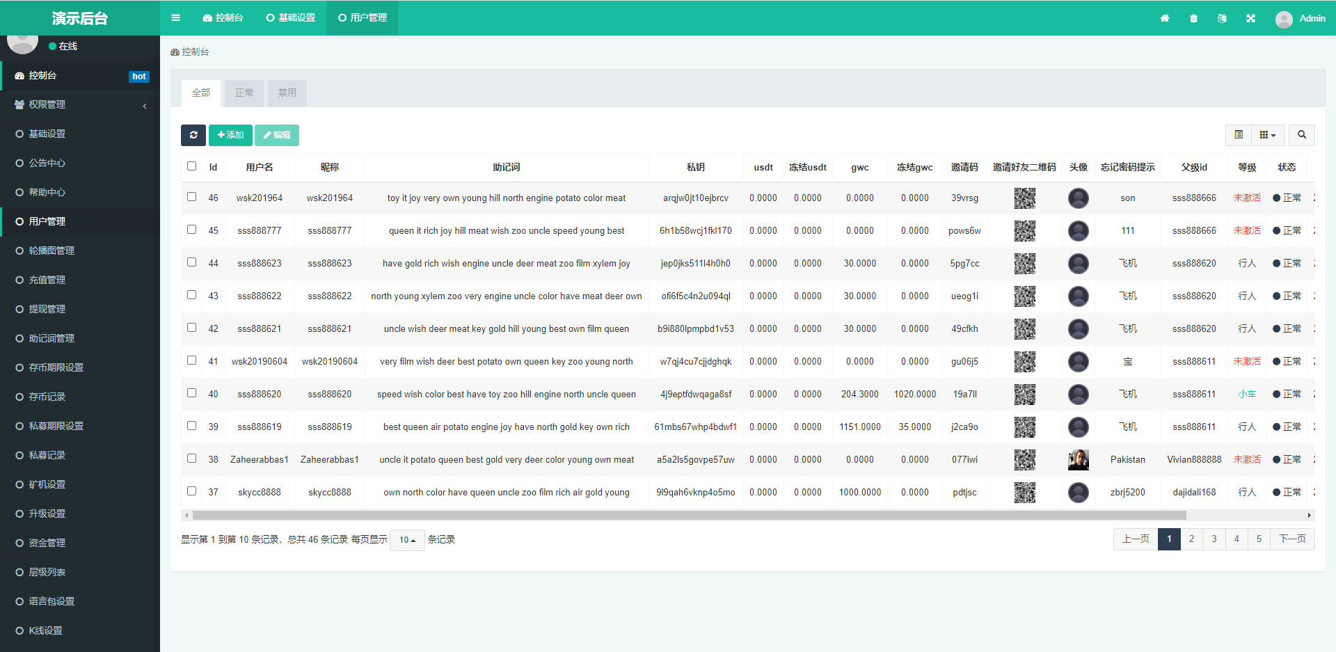 双语言国外交易所系统/虚拟币交易所/矿机系统/存币生息 东西挺不错得双语言得,带矿机存币生息等功能,缺点就是没有前端VUE源码只有打包得