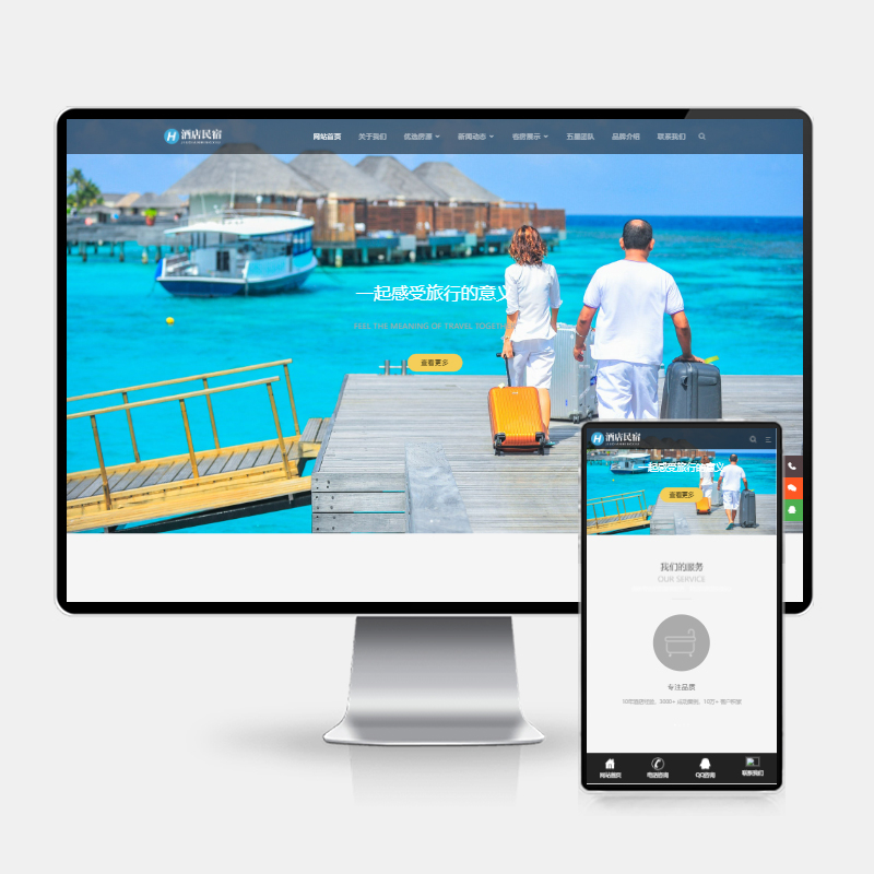 模板名:(H5自适应)酒店民宿网站pbootcms模板 客房旅馆网站源码下载