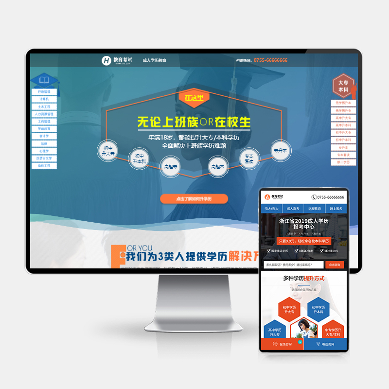 模板名:(PC+WAP)单页面成人教育考试pbootcms模板 百度竞价落地页网站源码下载