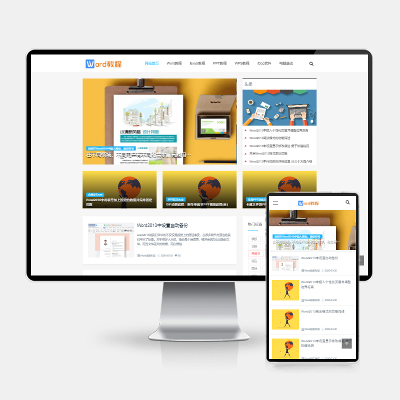 模板名:(H5自适应)pbootcms响应式WORD办公教程资讯类网站模板 wps办公资源教程网站源码下载