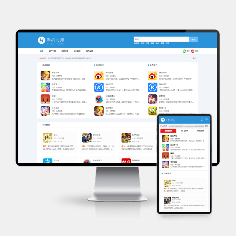 模板名:(H5自适应)APP应用软件下载站pbootcms模板 HTML5响应式手机软件下载网站源码