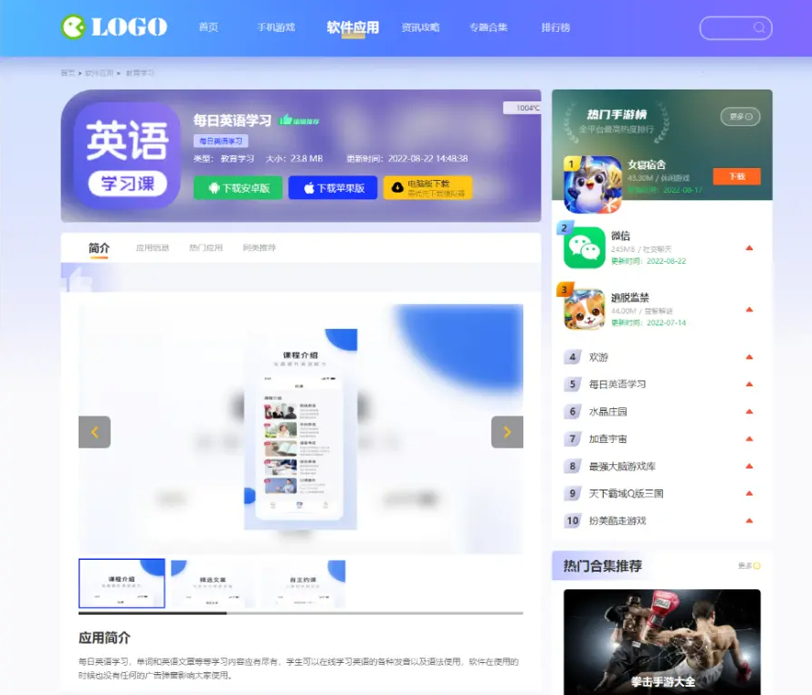帝国CMS7.5手游游戏应用软件APP下载站整站源码模板/百度推送/sitemap/同步生成