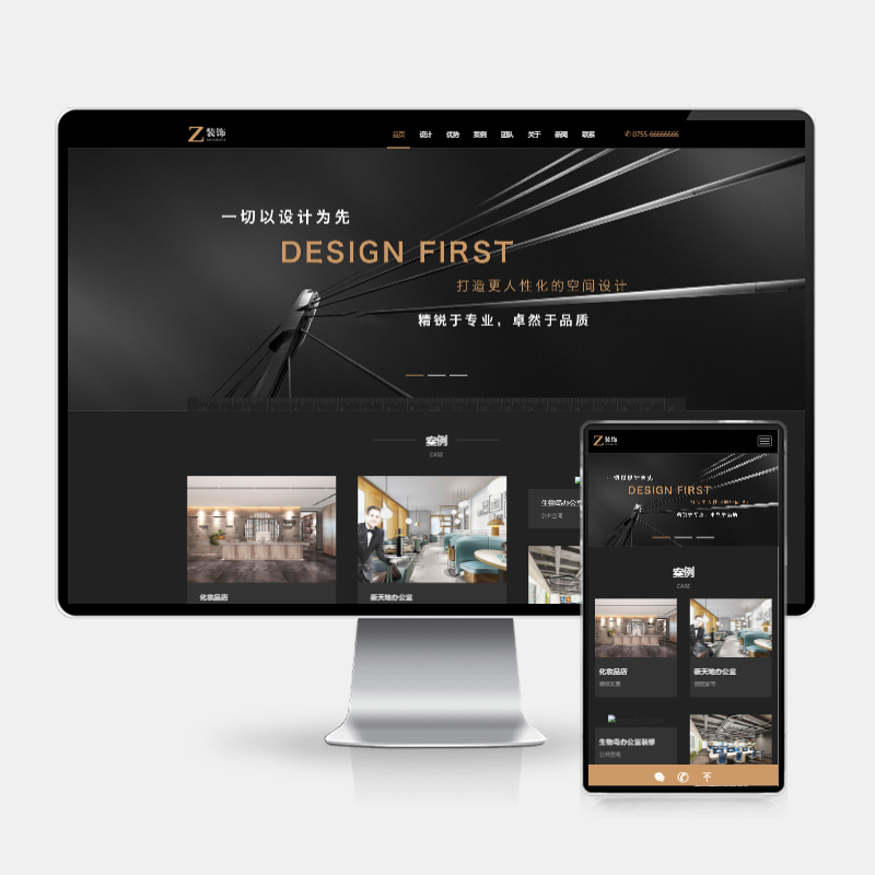 模板:(H5自适应)响应式黑色炫酷建筑装饰设计类pbootcms模板 HTML5装修设计公司网站源码下载