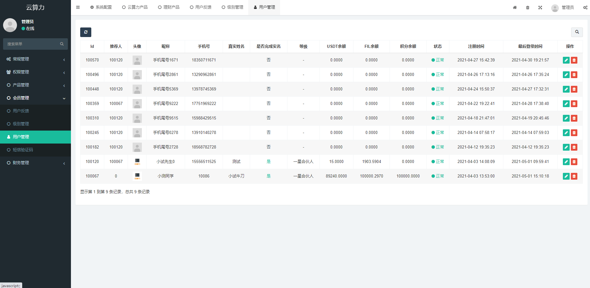 云算力APP矿机挖矿区块链源码: 后台自行添加售卖矿机/云算力 参数和收益比率和详情说明 自动设置矿机/算力每T收益 后台可添加理财产品 设置收益率 数量 天数 有合伙人分销功能 不同等级合伙人佣金比例设置 推奖励比间推奖励比团队奖励比平级奖励比 首页已对接全网算力 咨询页 推奖励、间推奖、团队奖、平级奖比例设置