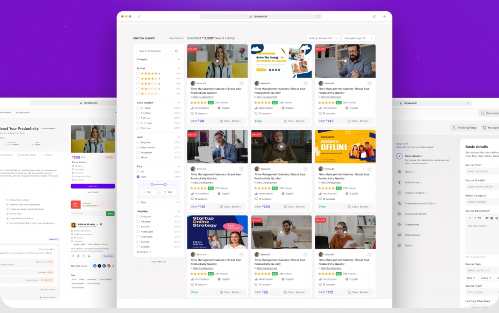- 移动兼容性:Lernen 完全响应,确保在桌面和移动设备上提供无缝体验。该平台还可以作为移动应用程序使用,提供对所有功能的移动访问。