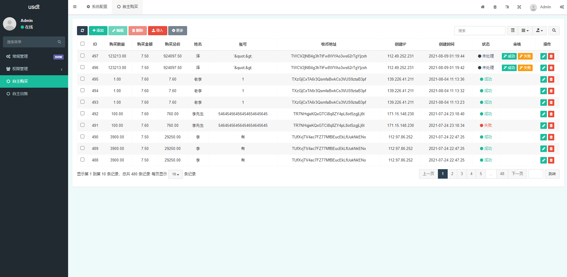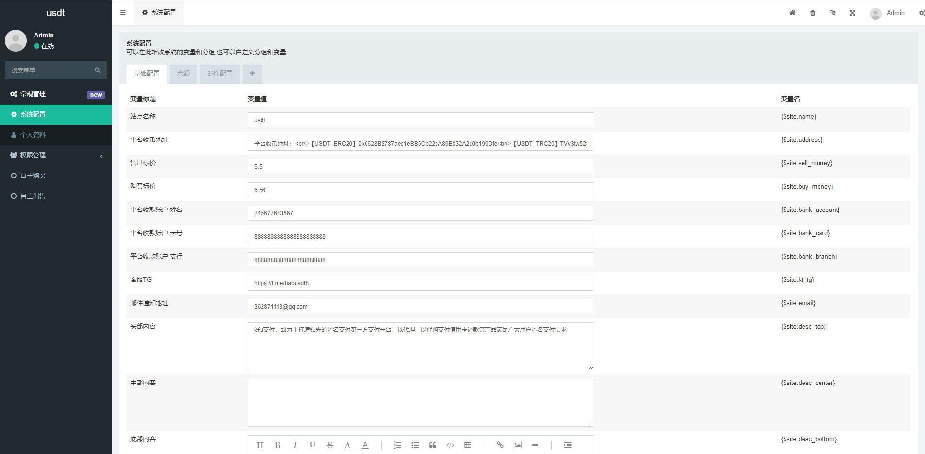 usdt出售购买价格根据后台配置数量不一样价格不一样。 前端输入内容提交后,后台会邮箱通知网站管理员处理订单。