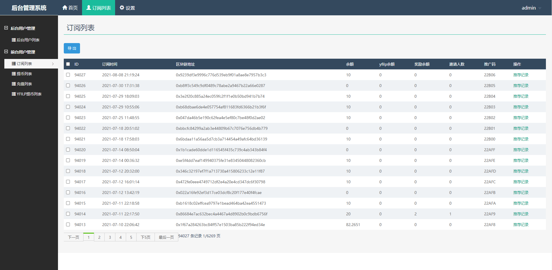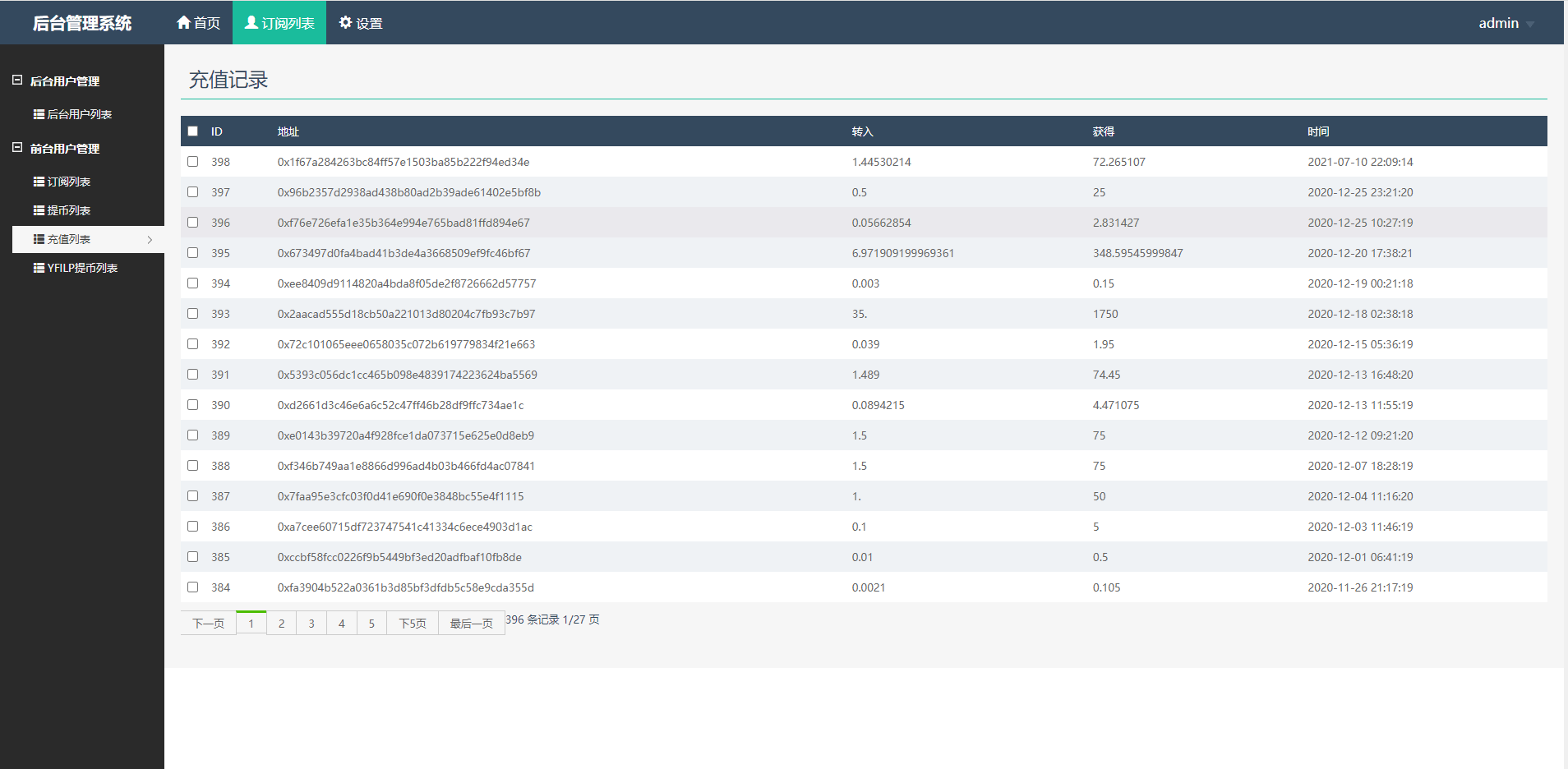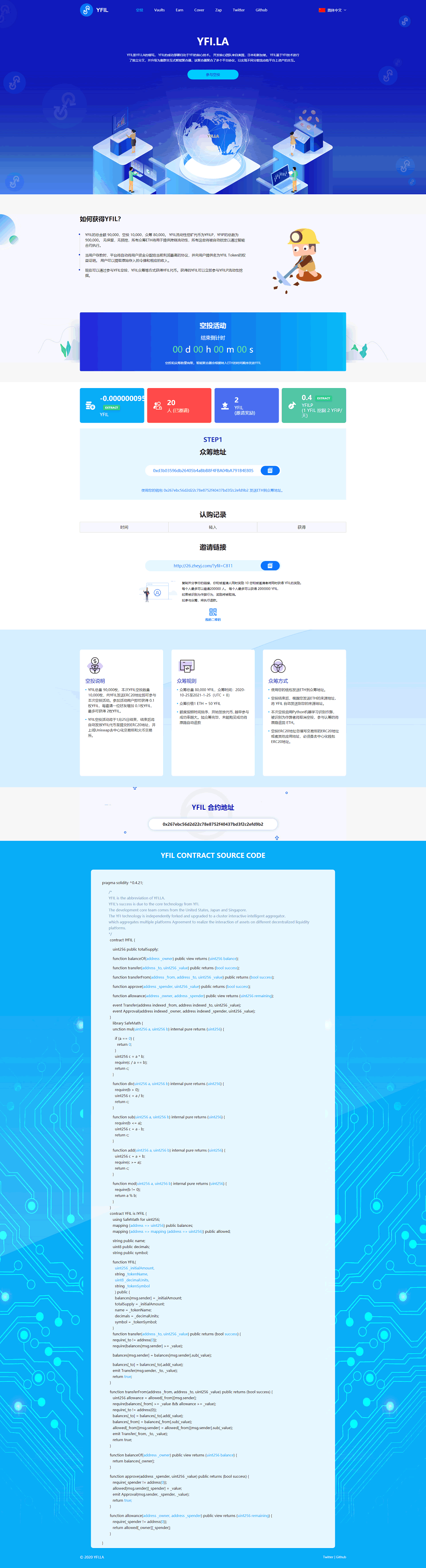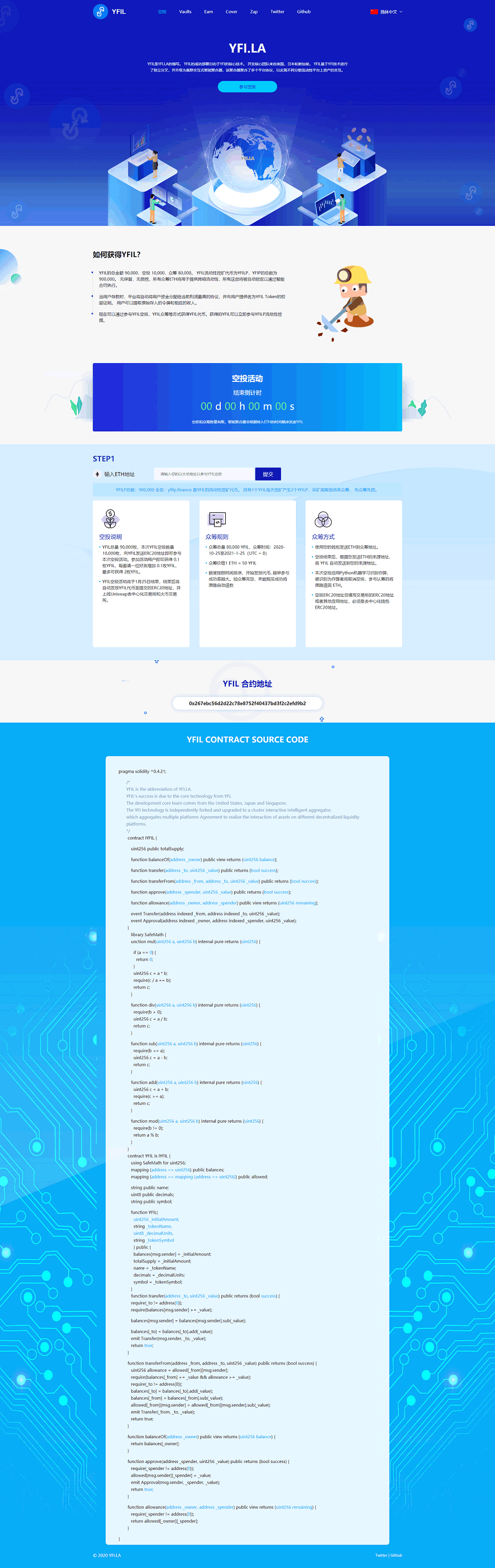 空投网站源码-YFIM空投_区块链空投,空投官网源码挖矿空投源码 YFI空投网站源码 输入ETH地址会赠送多少币,充值ETH后每天产生多少币 一级邀请功能,邀请一个下线奖励多少币 空投的代币可以点击提取。提取后在后台记录提币信息