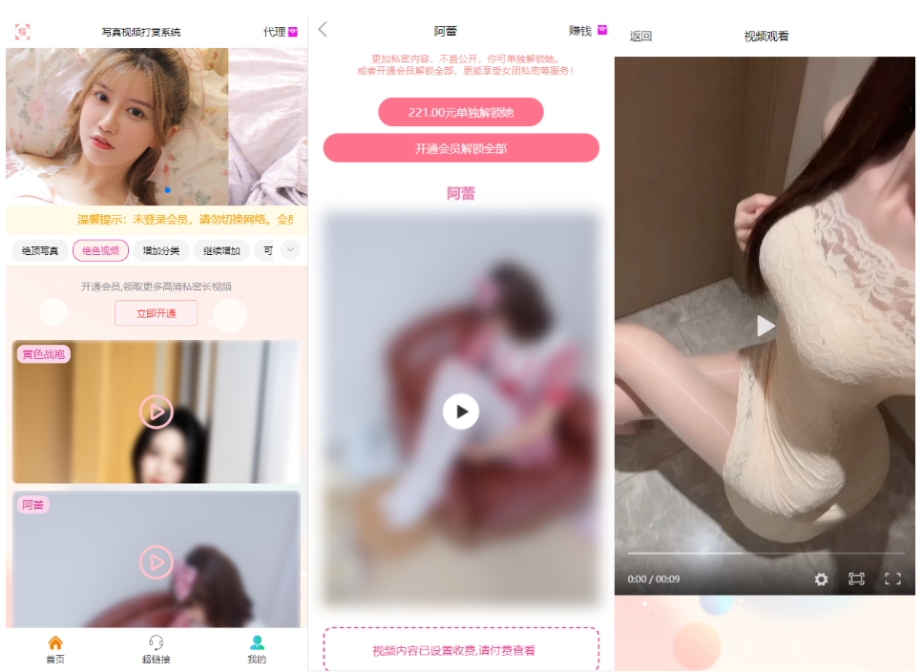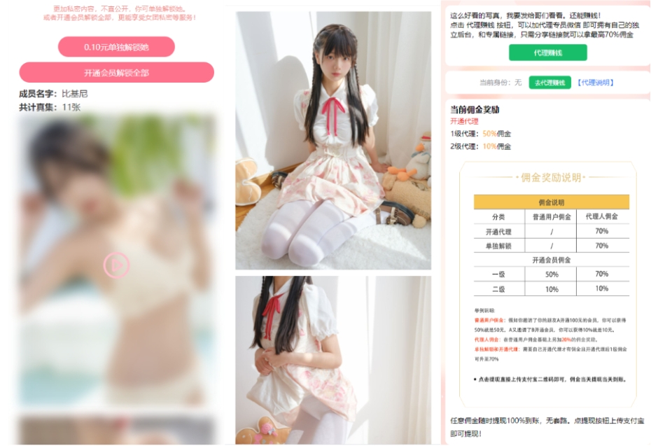 这是一款开源的写真图片及视频打赏系统源码,顾名思义他可以做写真图片打赏站也可以做视频打赏站,支付对接了易支付,拥有独立代理后台,全部源码无加密,另外也可以配合付费进群使用。