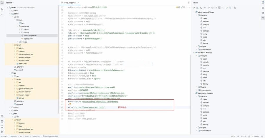 application.properties或application.yml(具体视项目结构而定)中,修改数据库、Redis、Zookeeper 相关的连接信息; - 确保与实际服务器环境对应。