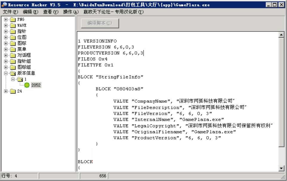 该工具可用来修改(木其片卑)游戏客户端的版权信息,项目名称包括(产品版本、公司、内部名称、文件版本、语言、源文件名)