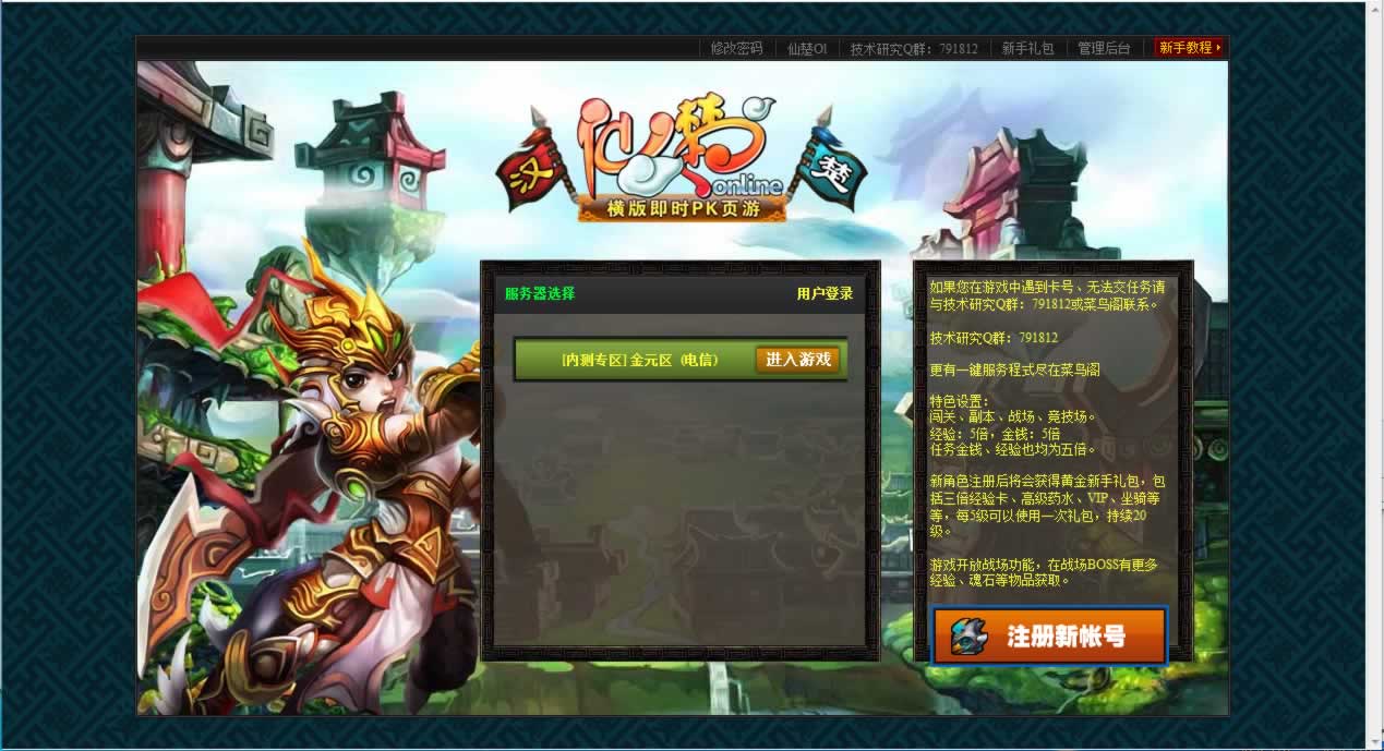 制作精美的横版即时PK页游【仙楚OL】最新整理Win一键即玩服务端+运营后台+教程,该源码狗子已测试过了,末发现问题,可以成功搭建。