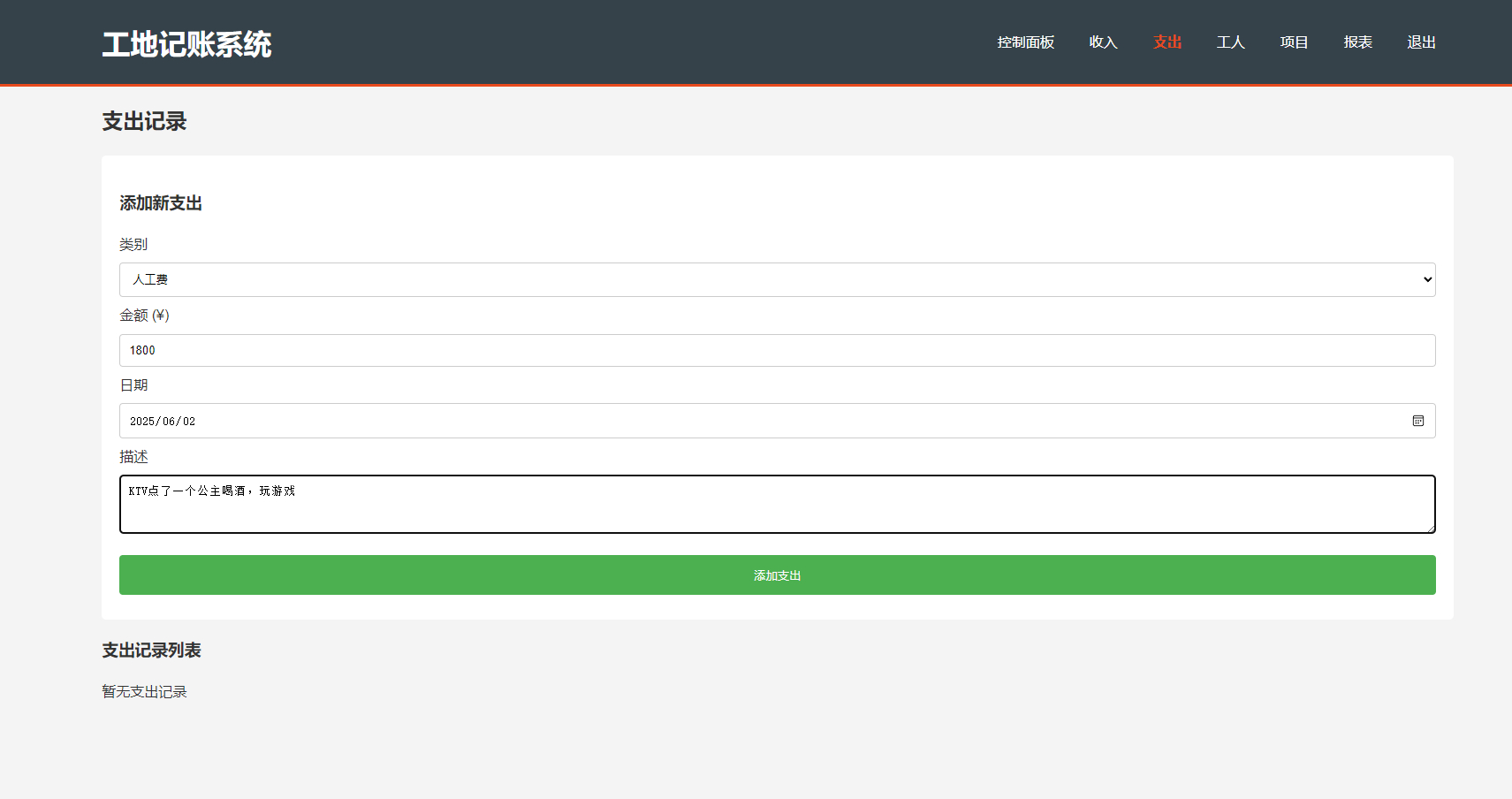 支出分类管理(材料/人工/设备等8+类别)