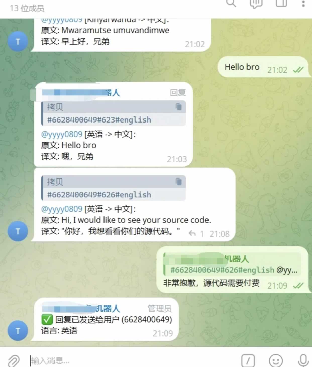 telegram AI全自动翻译客服机器人源码/带视频搭建教程