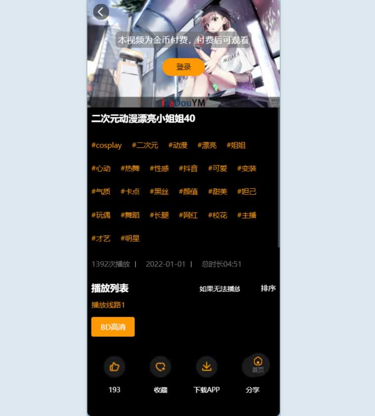 9. VIP视频以及积分付费视频独有标识,积分付费模式,设置视频积分后不管是不是会员都要求积分付费才能观看