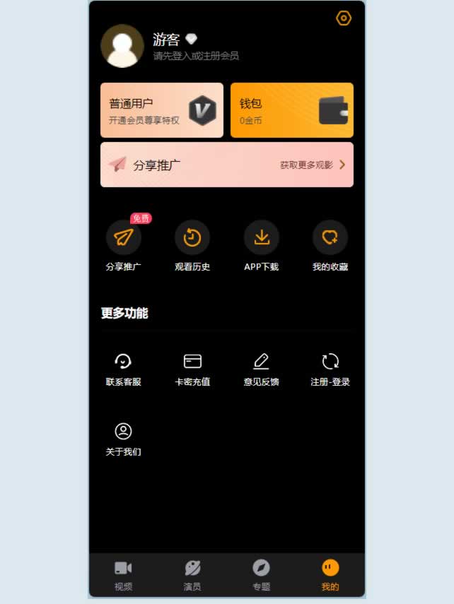 2. 视频,演员,专题,收藏,会员系统模块齐全,支持子分类,支持多线路选集