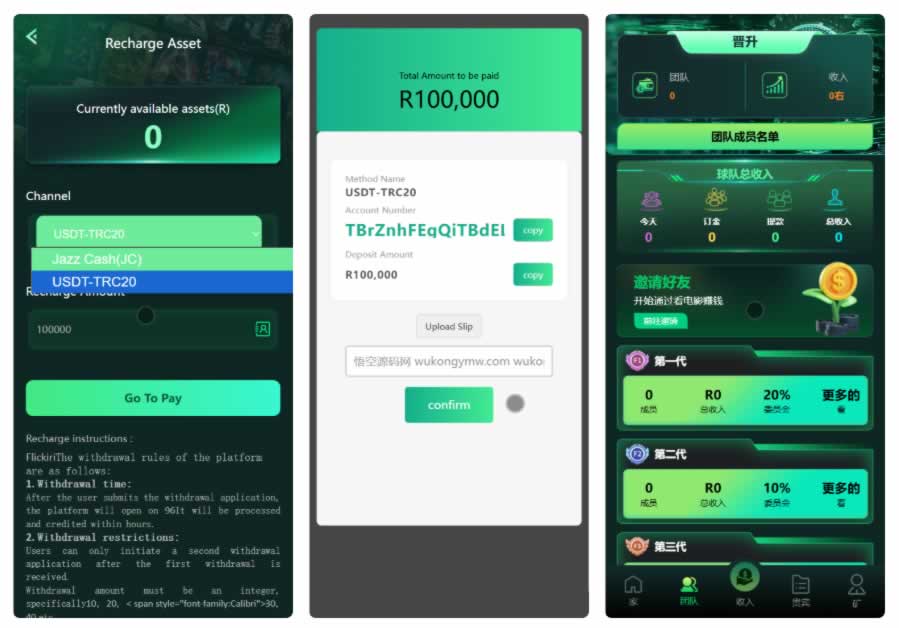 带三级分销,后台可以设置充值、提现的渠道,比如虚拟货币/其他货币等