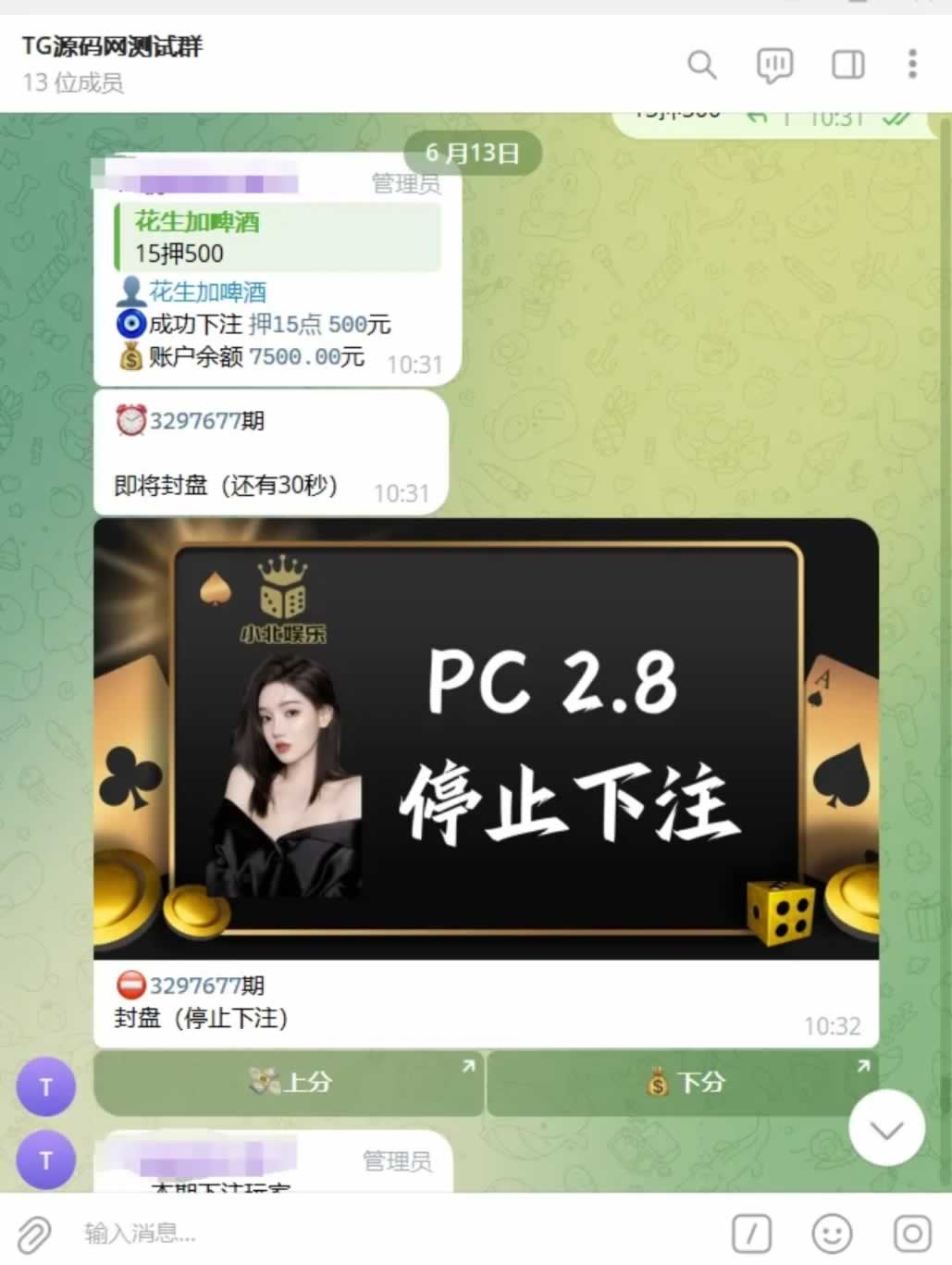 上下分功能这些没有测试,只测试了下注,开奖,结算等