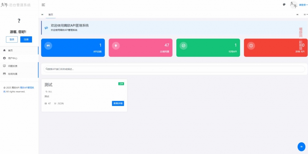 1.重点修复安全性问题并提升用户体验,采用现代化前后端设计,适配多场景API管理需求。