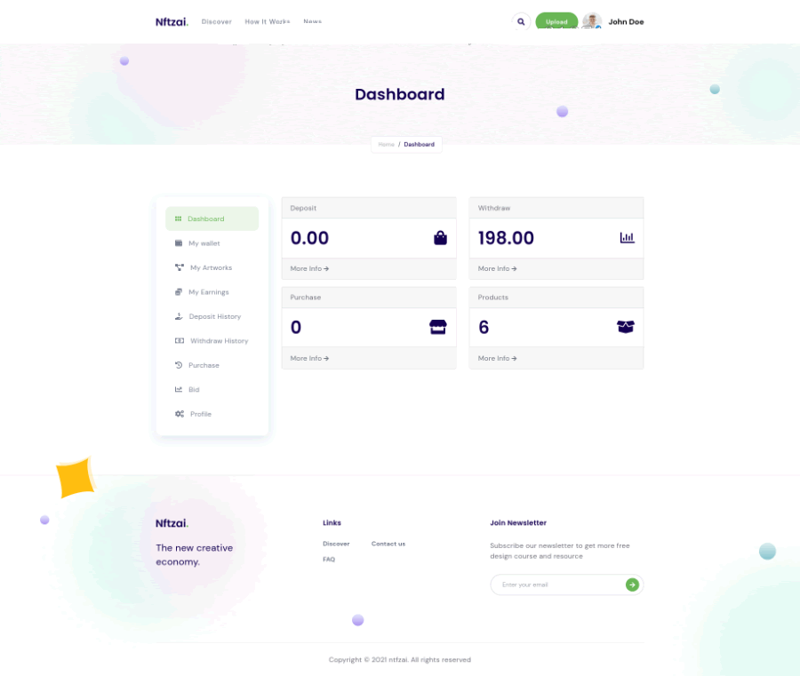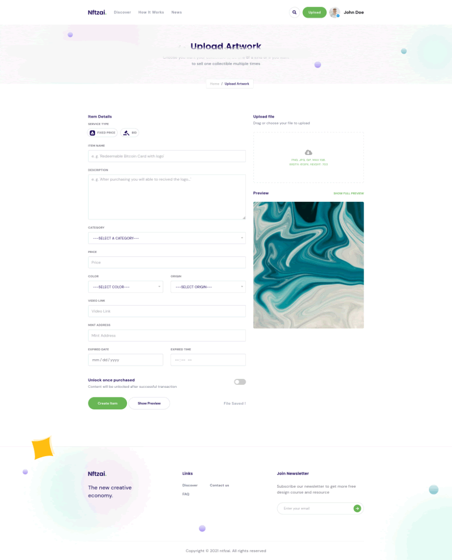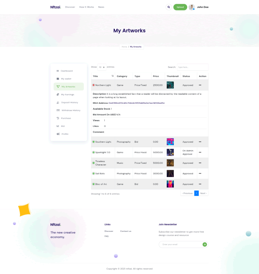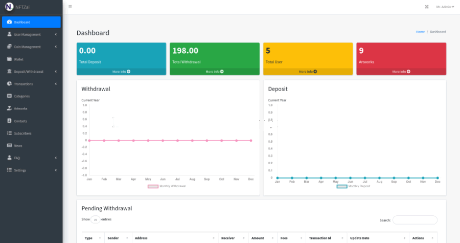 NFT买卖市场 艺术品交易商城 (英文未汉化) NFTZaiCMS 是一个nft市场,出售艺术品,购买艺术品。提供加密币存取系统。 采用 Laravel 框架 PHP语言 MYSQL数据库 它提供了非常好的用户体验使用这个网站。简洁易用的用户控制面板和后台管理面板