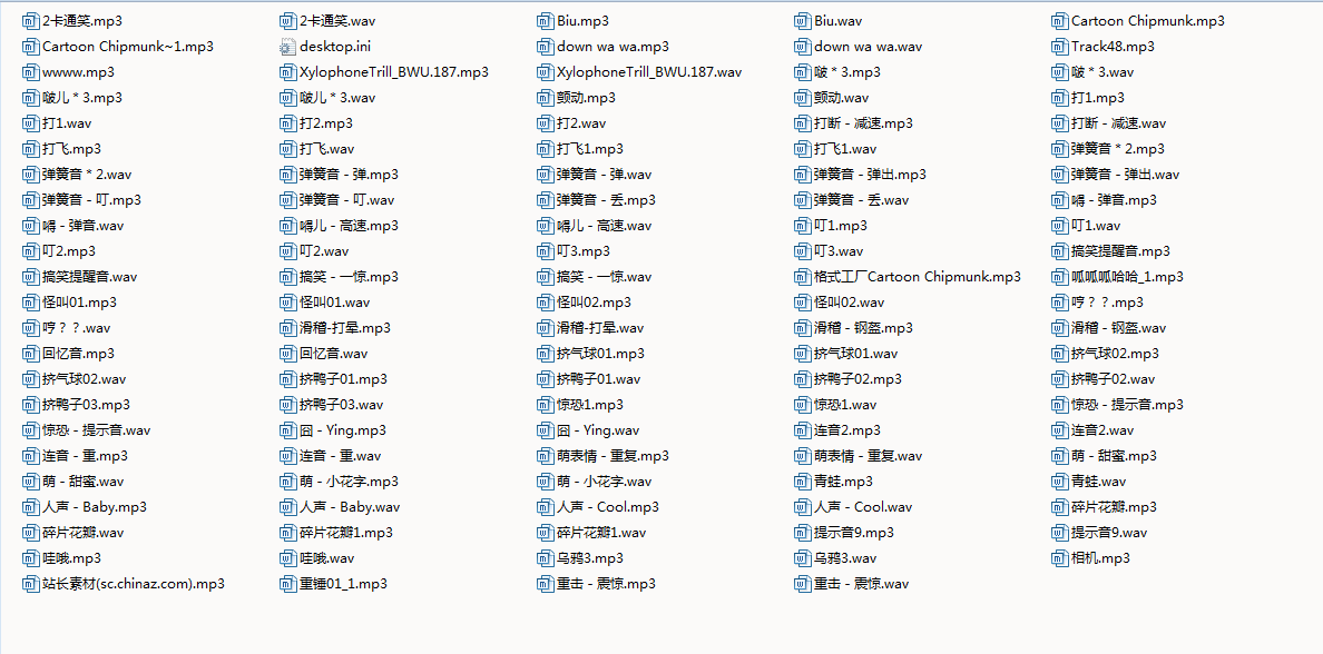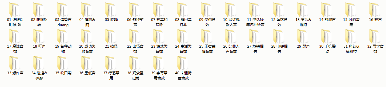 只有想不到,没有找不到,该文件包中,有1211个音效文件,共565M,请看下面部分截图,牛不牛你说了算!