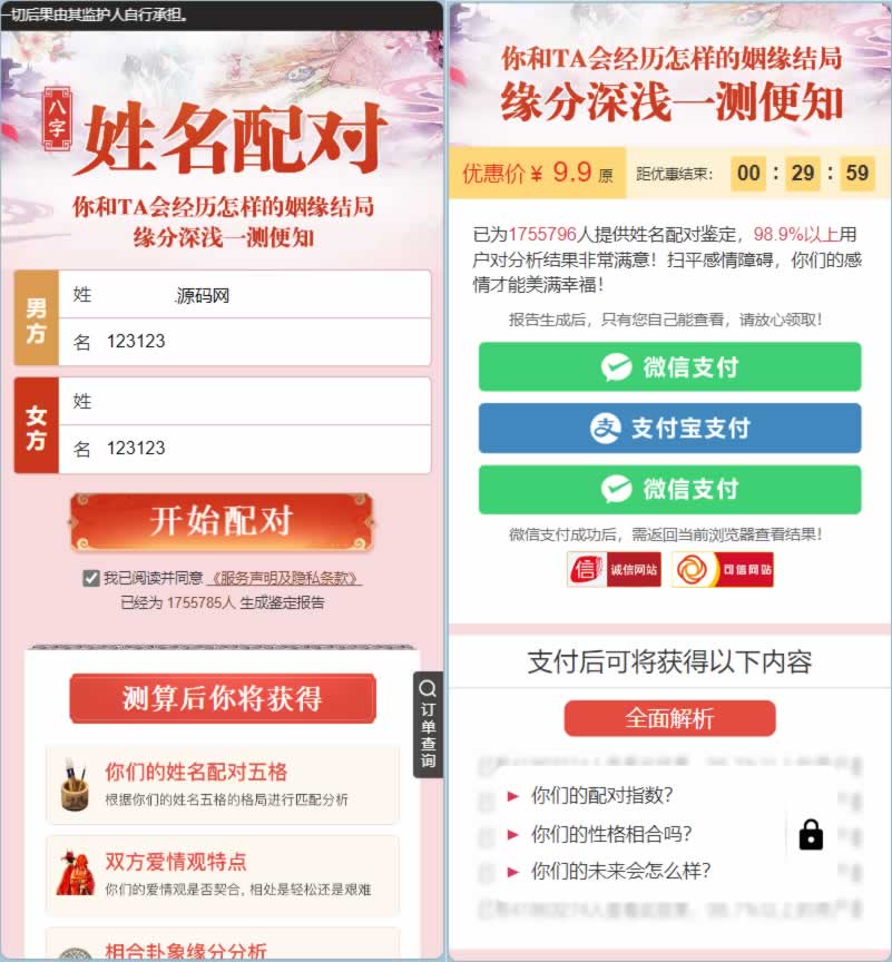 这是一款2025蛇年运势测算、网站源码、 风水起名、八字算命、算财运姻缘等,第三方支付去除虎皮椒支付改用易支付 (通用市面彩虹易支付) 免去开通费用为您节省168元的开支,本源码为付费测算可以为你带来超强的变现能力,喜欢的自行部署吧!