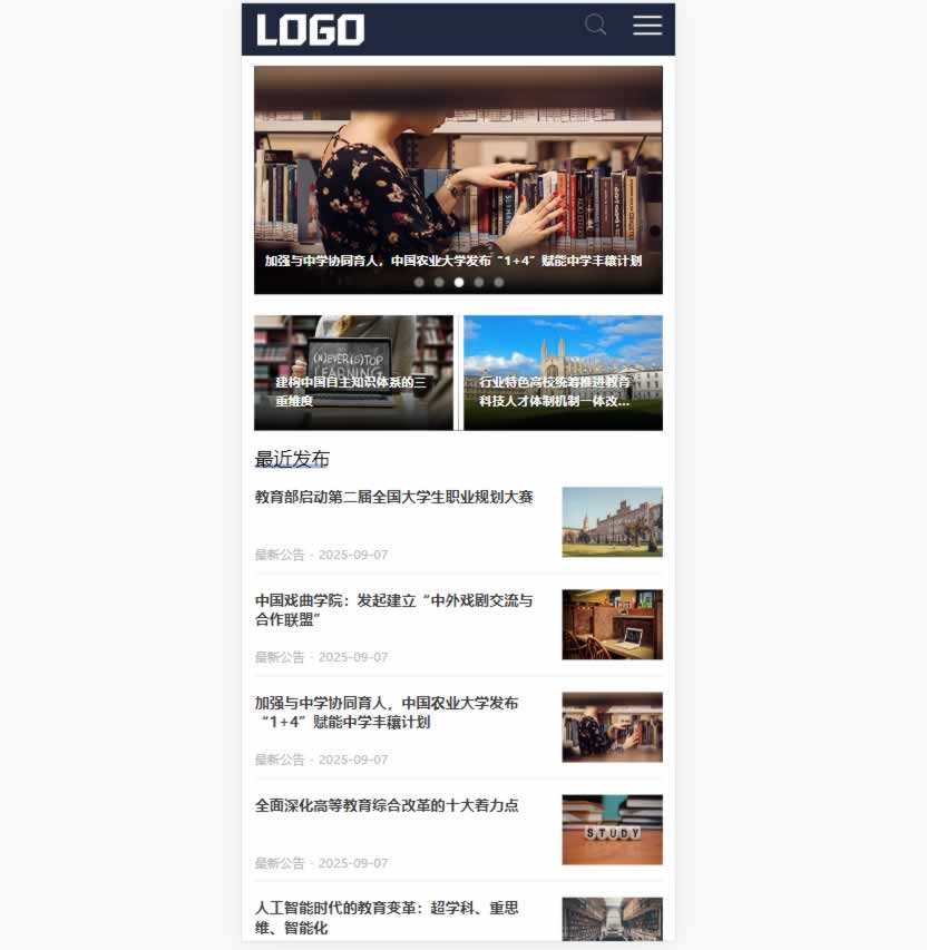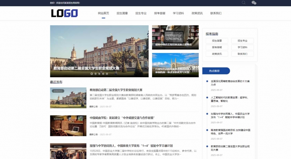PbootCMS内核开发的网站模板,该模板适用于招生考试网站、新闻资讯网站等企业,当然其他行业也可以做,只需要把文字图片换成其他行业的即可;