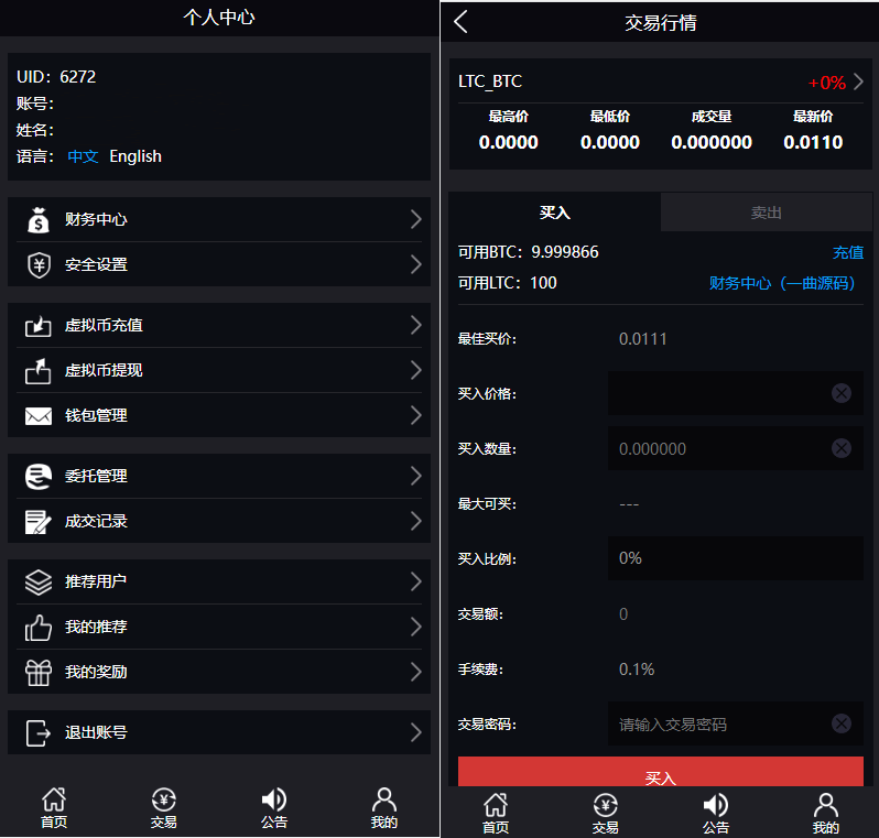 数字货币合约交易源码,综合虚拟货币交易平台源码(基于thinkphp框架)中英文切换 支pc+h5 持委托交易,买卖交易市场等等功能 这个框架适合二开 好多比较好一点的交易所都是基于这个二开的。功能不是很多 适合学习研究 二开。