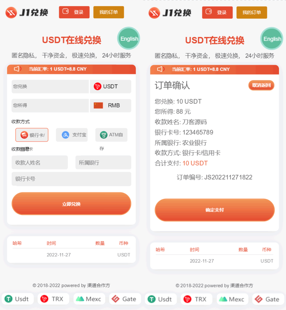 买卖兑换u源码/带秒u 支持双语言 中英文 无提示版