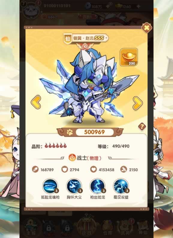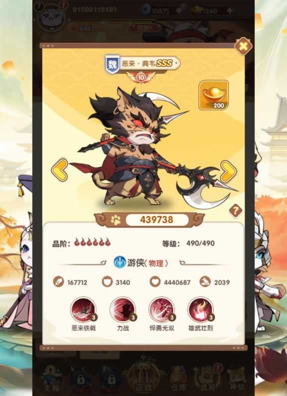 4.更新武将为一键升级,一次最多可以一键升100级!