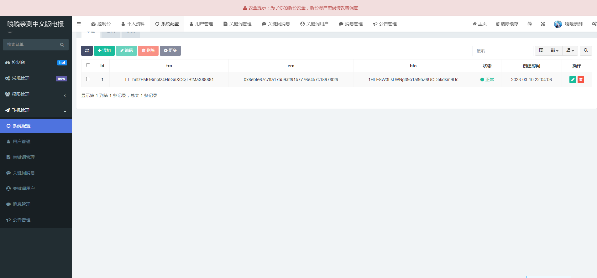 先登录后台 再下载假飞机 安装完成后 发消息给别的号 互相聊天 聊天记录会在后台显示 发送收款地址 地址会更改为后台设置好的