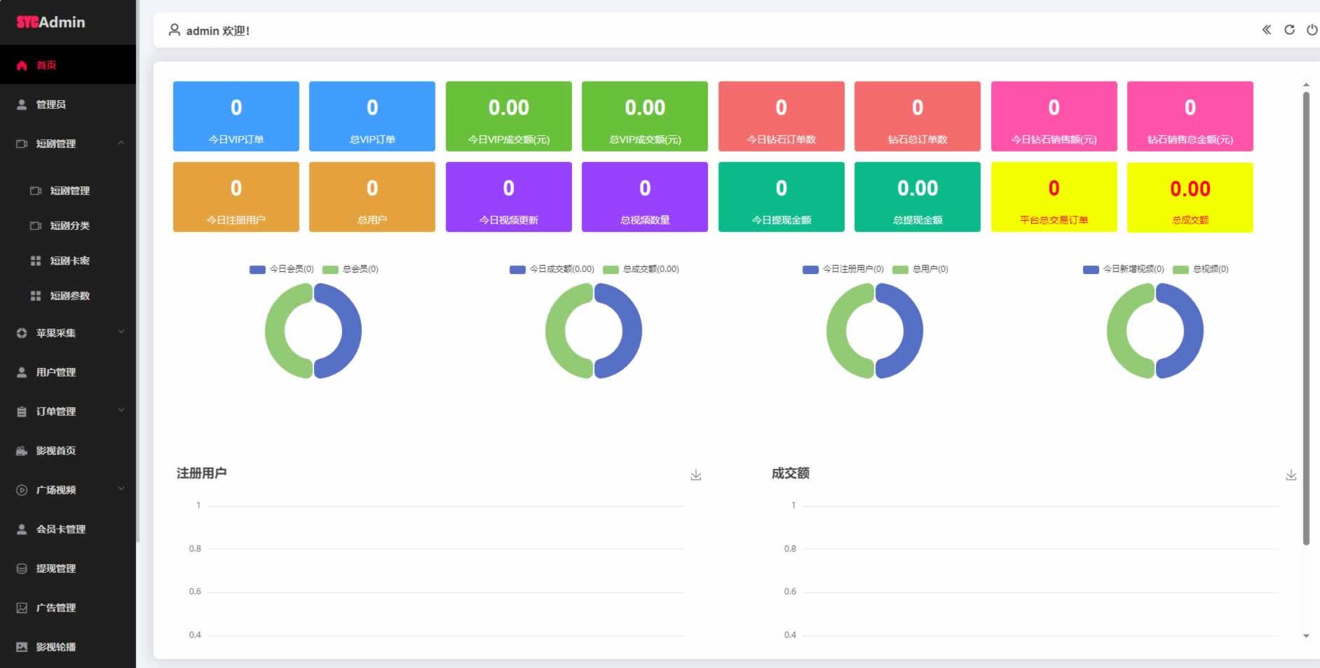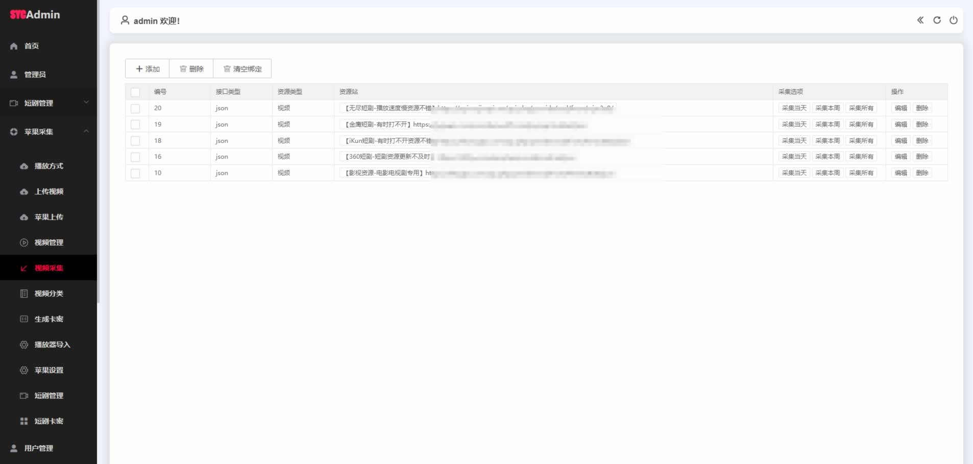 重要提示:修改后台的任何HTML、JS文件后一定要清理浏览器缓存,否则可能不生效。关于苹果cms系统,这个只是用来采集电影电视剧用的,还使用了苹果cms自带的卡密功,用来激活app会员或者充值钻石,或者你也可以自己做一个卡密系统,还使用了苹果cms的影视分类功能,苹果cms已与app对接了,所以如非必要或者不懂,请不要改动苹果cms的任何设置,尤其是苹果cms的电影分类,切记不要去删除重新添加,请在原基础上修改即可,改动造成的错误自己解决。(做任何改动请先备份,这是良好的习惯)