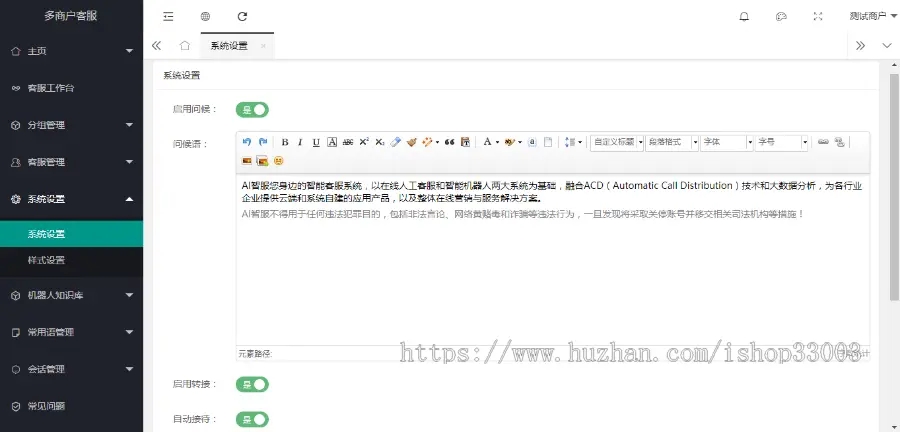 自助注册,免费试用 - 加强客户体验,商机转化率提升50% - 提升在线客服效率,专注线上转化 多重技术保障 - 动态DNS持续重连 直至到达 - 全面的SLA保障体系,大数据集群部署 多渠道接入 - AI智能客服支持桌面网站、移动网站、App、微信、微博、短信等多种渠道接入 - 客服可以在一个后端接待所有渠道来访的客户 多种接待方式 - 企业可根据自身的业务场景来决定采用人工客服还是机器人客服的方式进行接待 - 也可以配置为人工客服优先接待或者智能机器人客服优先接待 智能路由分配,开启高效服务 - 多种分配规则,空闲率分配,随机分配,熟客优先,灵活选择 - 指定客服、技能组分配,提供最合适的服务 - 咨询量大时,支持排队溢出,服务下沉,让用户不再等待 智能客服机器人,7*24小时不间断服务 - 一键开通,全天候服务用户,告别排队 - 人机协作模式辅助人工客服,高效接待 - 覆盖率、精确率等各项指标均领行行业 全方位用户画像 - 对接thinkphp系统,结合分组体系,精准描绘用户画像,完成用户分层 - 地区/会话发起页/来源等用户轨迹完整记录,主动营销有据可依 - 全渠道历史服务记录统一查看,用户需求全面掌握