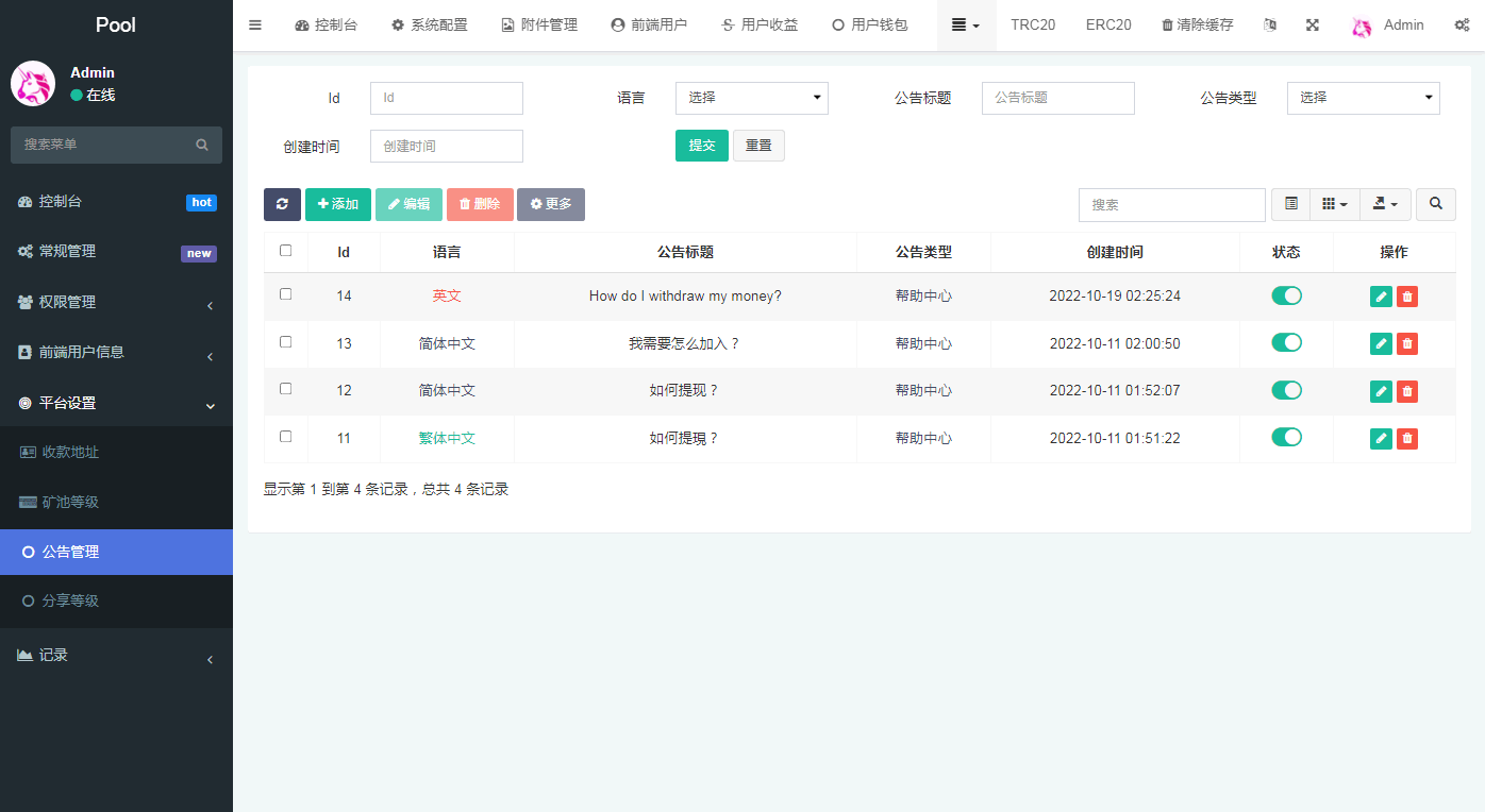 挖矿秒u源码支持ERC TRC。授权提币正常,支持10国语言,带安装搭建教程,建议不要在后台保存授权私钥,走官方提币通道。