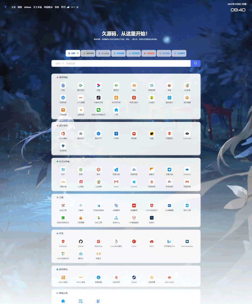 测试环境:PHP7.2 SQL5.4 伪静态TP 所有文件解压到根目录,直接打开域名,按提示安装就行了。精美PHP导航网源码 导航收录网站,技术导航,QQ技术导航,网站导航,站长导航网源码,网站目录源码,前端基于D.Young的 5IUX搜索 ,后台使用笔下光年的Light Year Admin模板开发,包含多种搜索引擎,致力于简洁高效无广告的上网导航和搜索入口,沉淀最具价值链接,全站无商业推广,简约而不简单! 源代码是开源的。