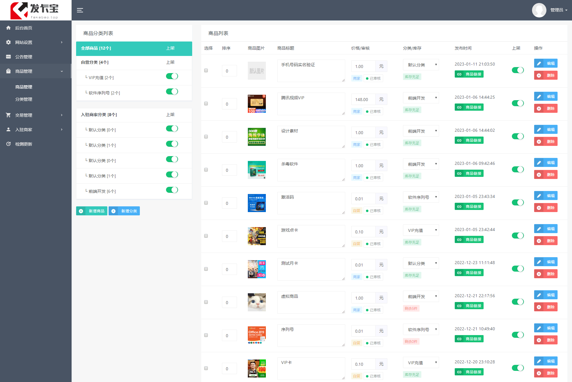 商家和管理员均可发布商品,首页会显示商家入驻介绍页面。