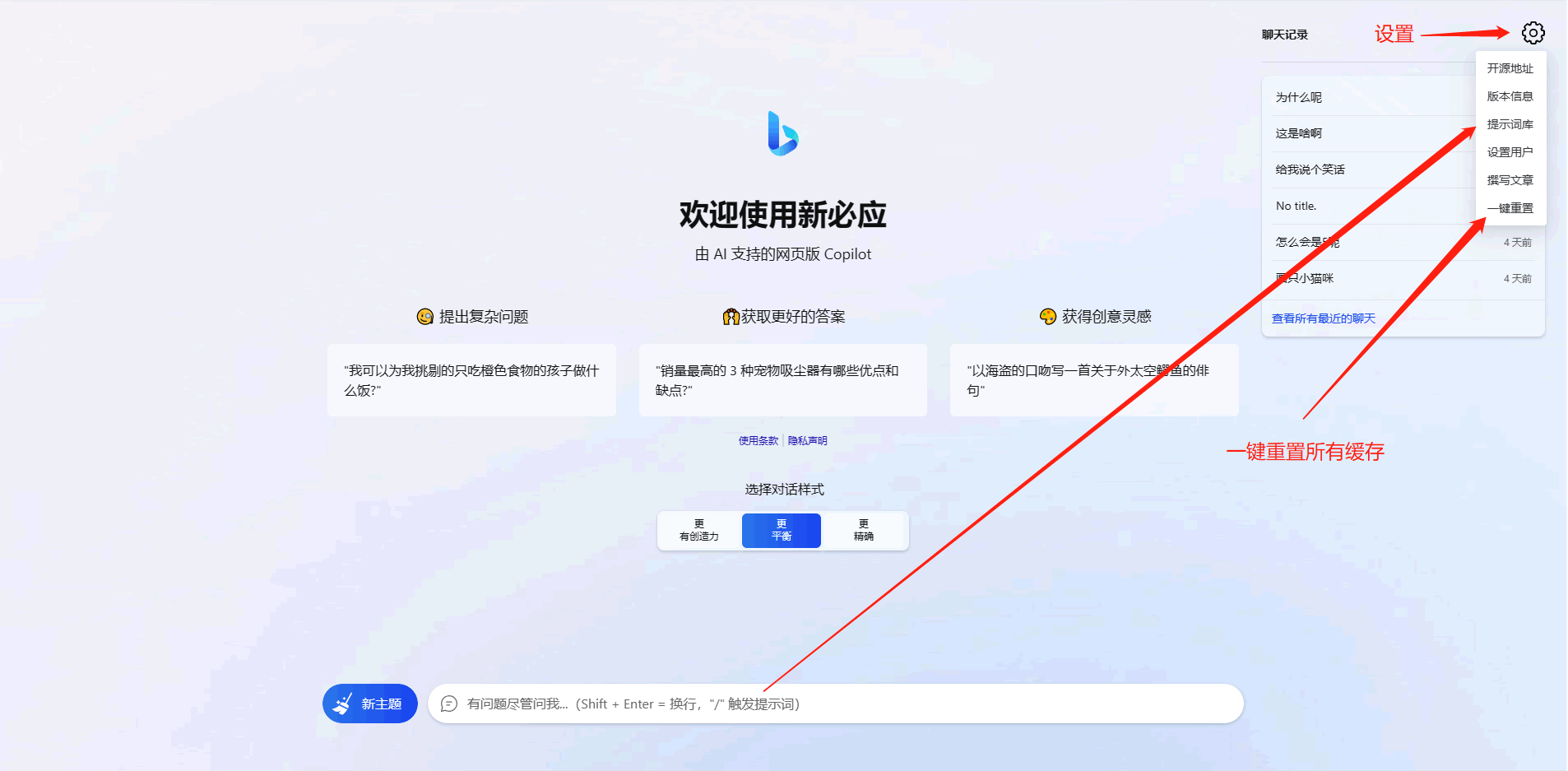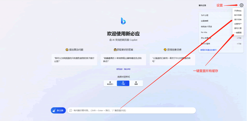 它不仅拥有一致的UI体验,还支持ChatGPT提示词,国内可用,基本兼容微软Bing AI所有功能,用户可以无需登录即可畅聊。