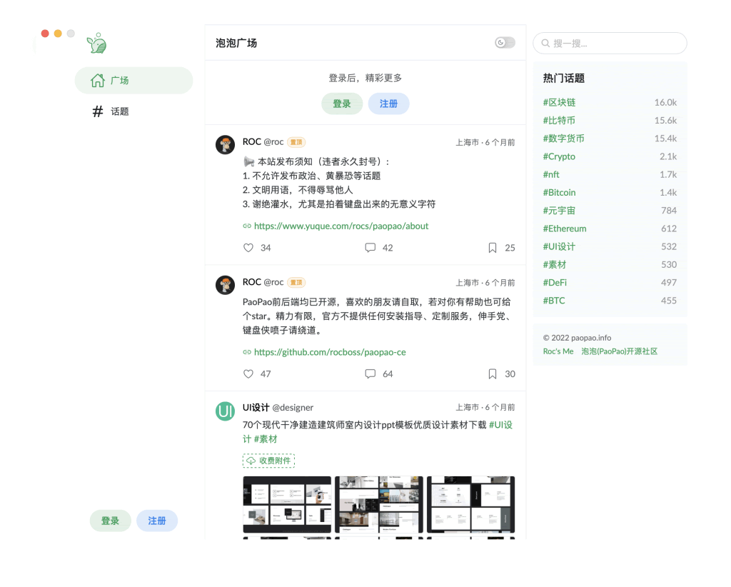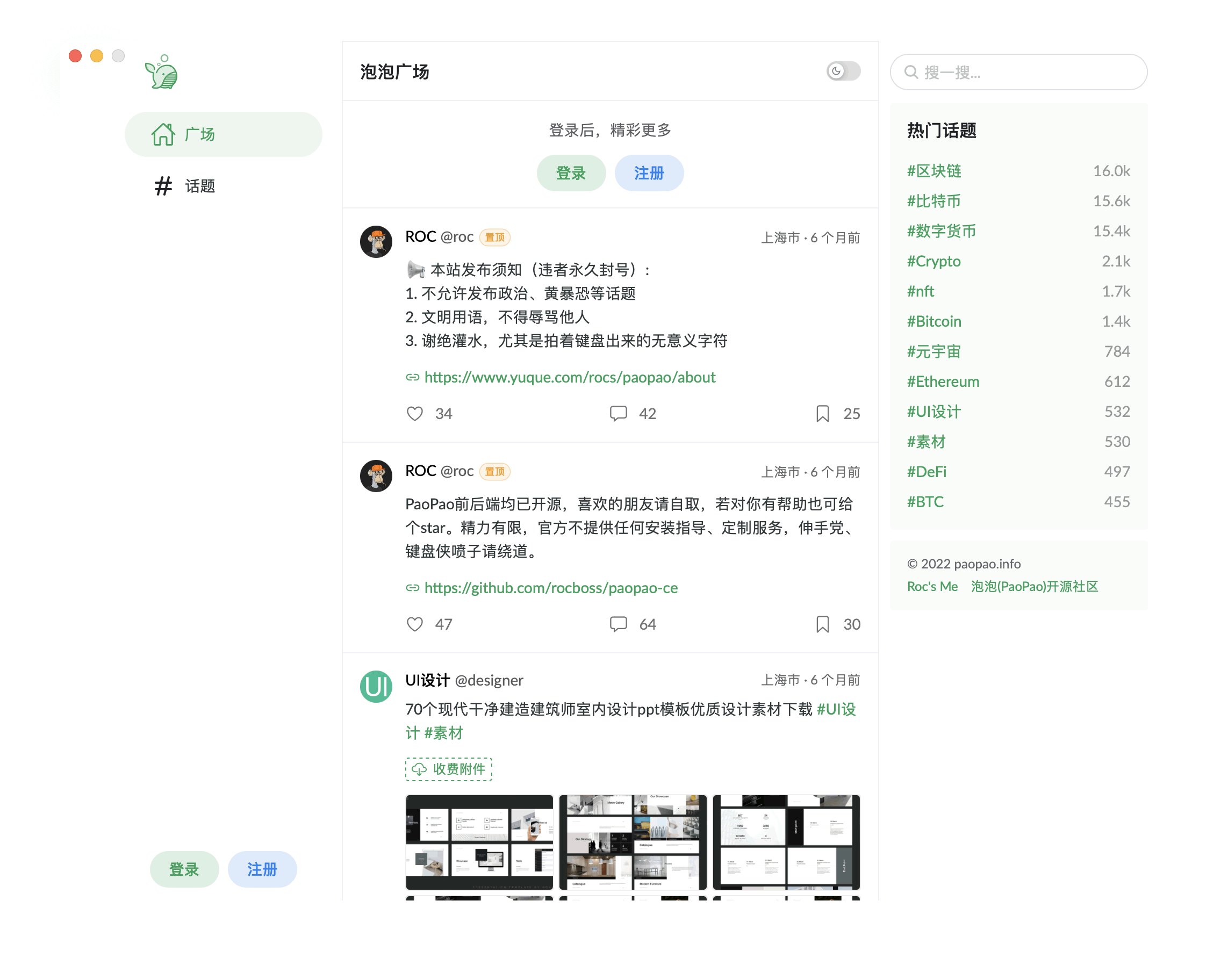 泡泡是一个真正意义上高性能的微社区,虽然规模不大却拥有完备的功能。