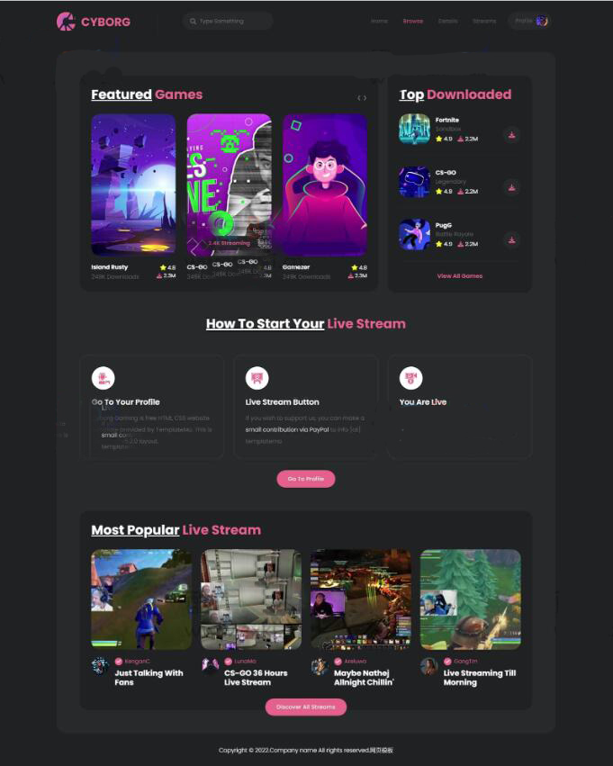 TML5热门游戏体验宣传网站模板是一款备受欢迎的游戏体验网站模板,现可供下载使用。 请注意,该模板使用了谷歌字体库,因此在页面加载时可能会出现较慢的情况。不过,这并不影响模板的功能和美观性。最后再申明一下,这套源码是模板,不是全站系统,看好了再下载哦!