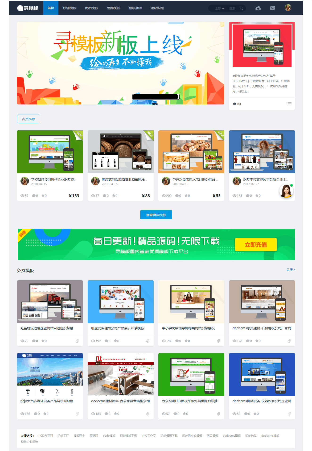 基于织梦DEDECMS内核的寻模板素材图片设计收费下载站源码